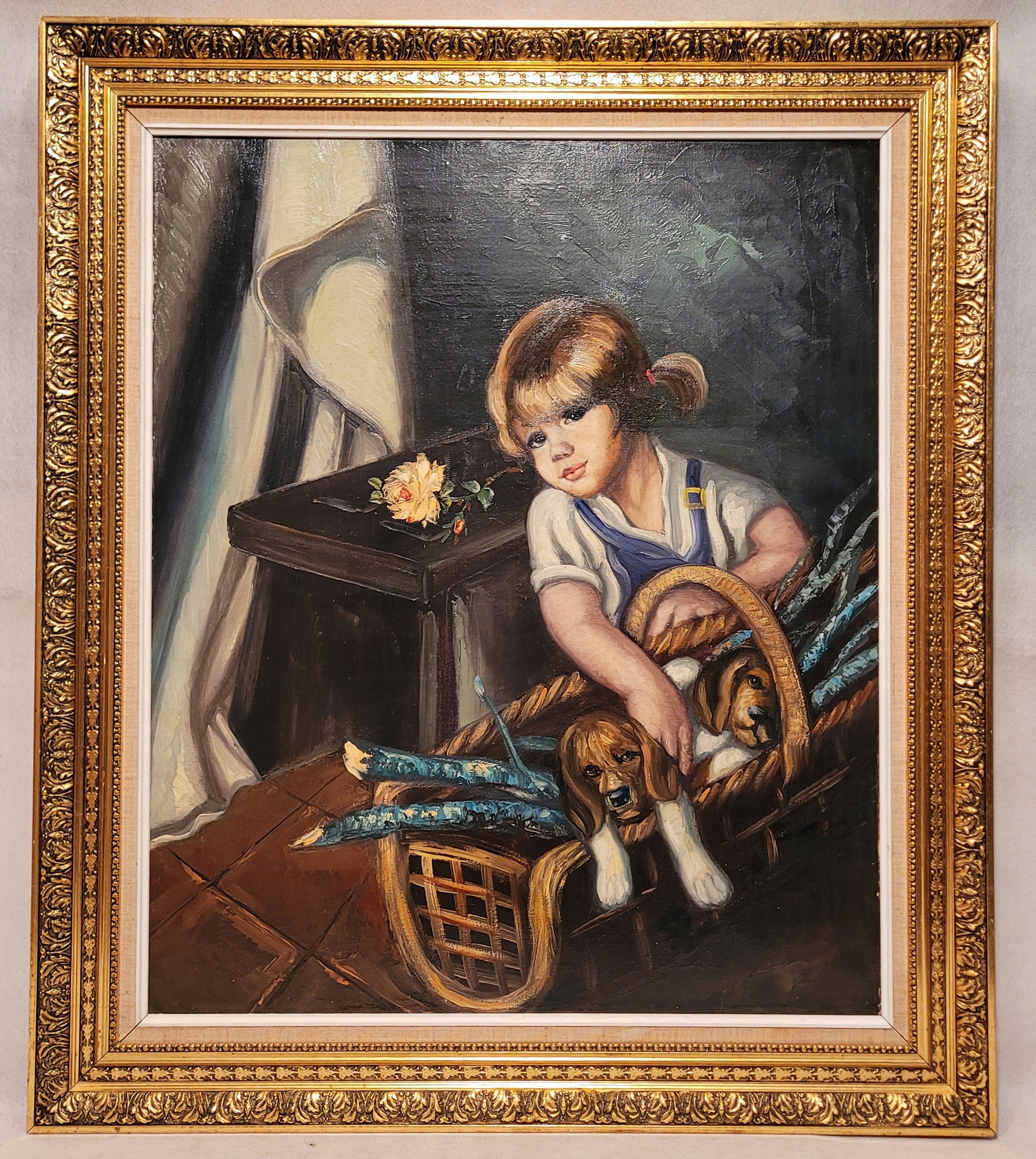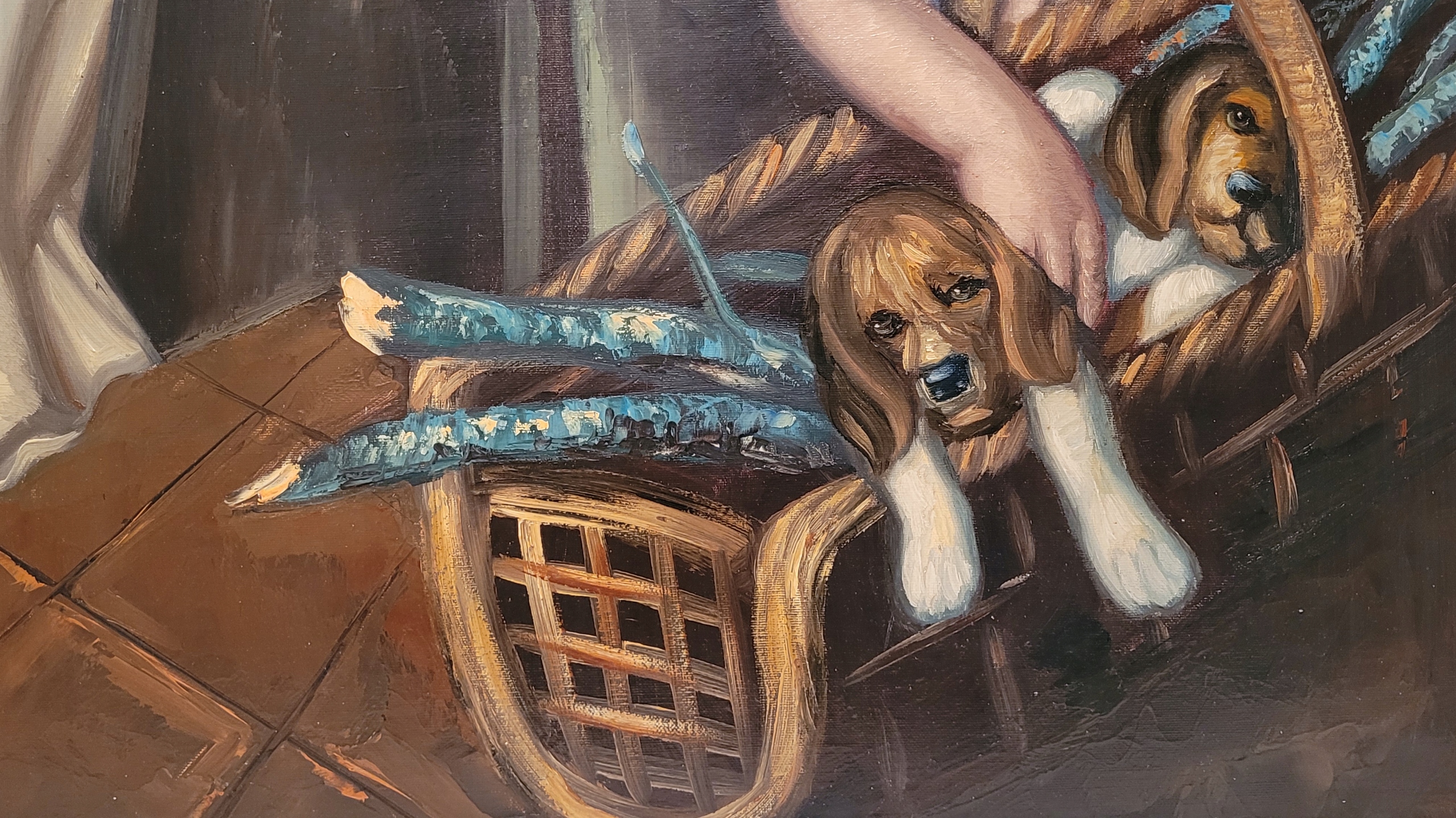 Объект продажи - красивая старая нефтяная картина "с собаками".