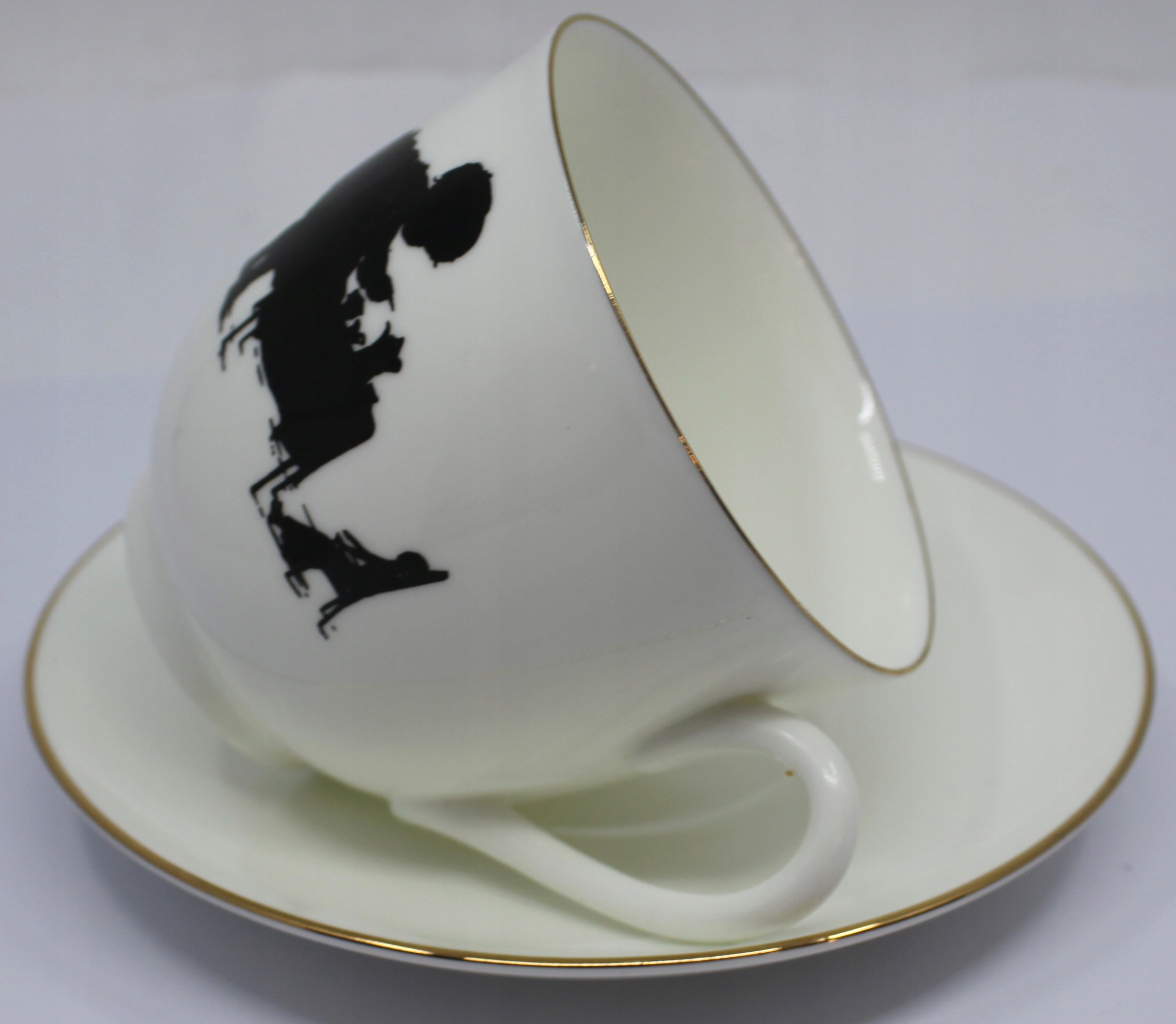 ЧАШКА И СОУС ИЗ КОРОЛЕВСКОГО ОЧЕНЬ ТОНКОГО КОСТЯНОГО ФАРФОРА, ОТДЕЛКА 22-КАРАТНОГО ЗОЛОТА, ПОДПИСЬ