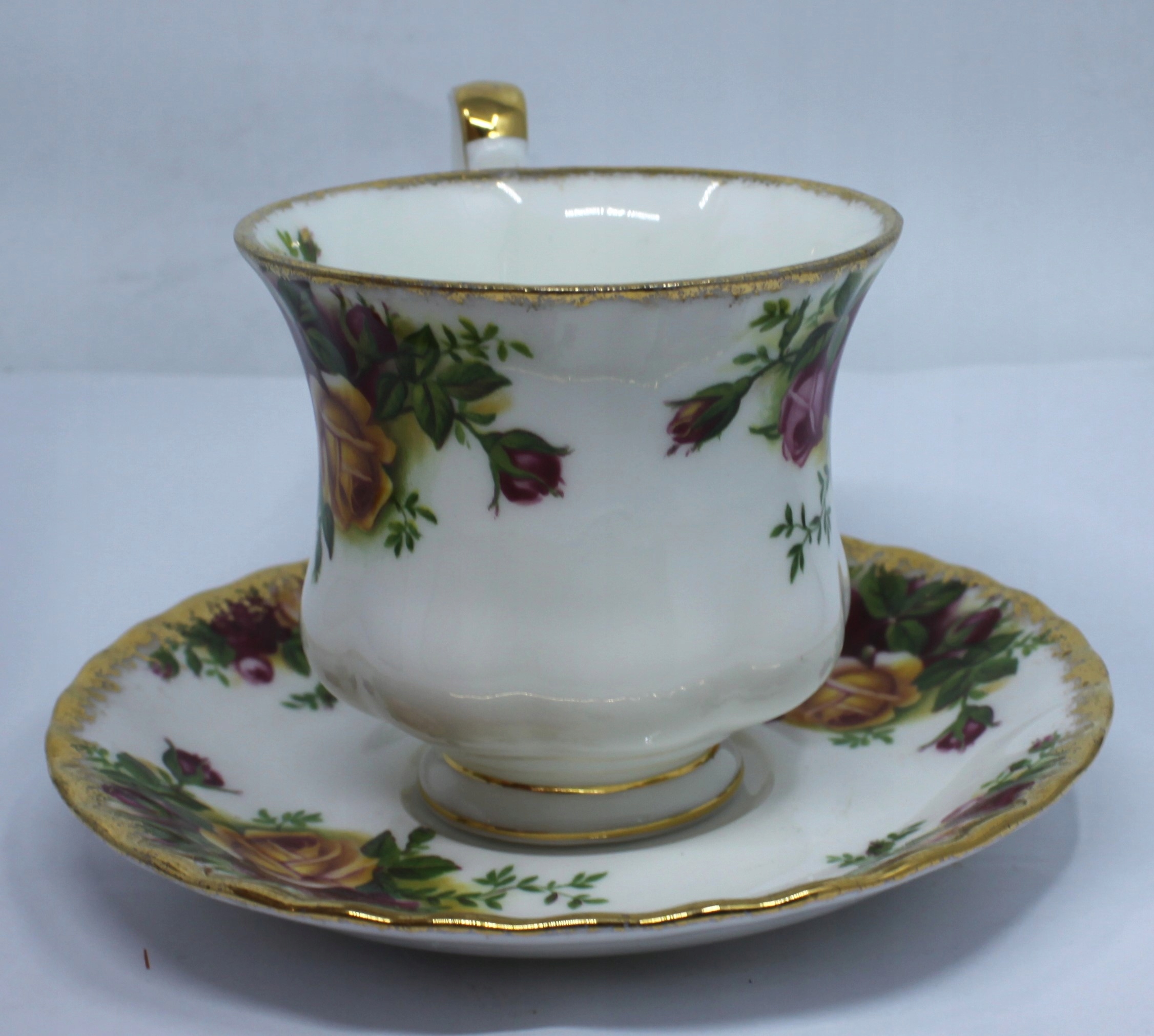 ЧАШКА ДЛЯ КОФЕ ИЛИ ШОКОЛАДА С СОУСОМ, ИЗГОТОВЛЕННАЯ ИЗ КОСТЯНОГО ФАРФОРА ROYAL ROYAL ALBERT, ОТДЕЛКА 22-КАРАТНОГО ЗОЛОТА.