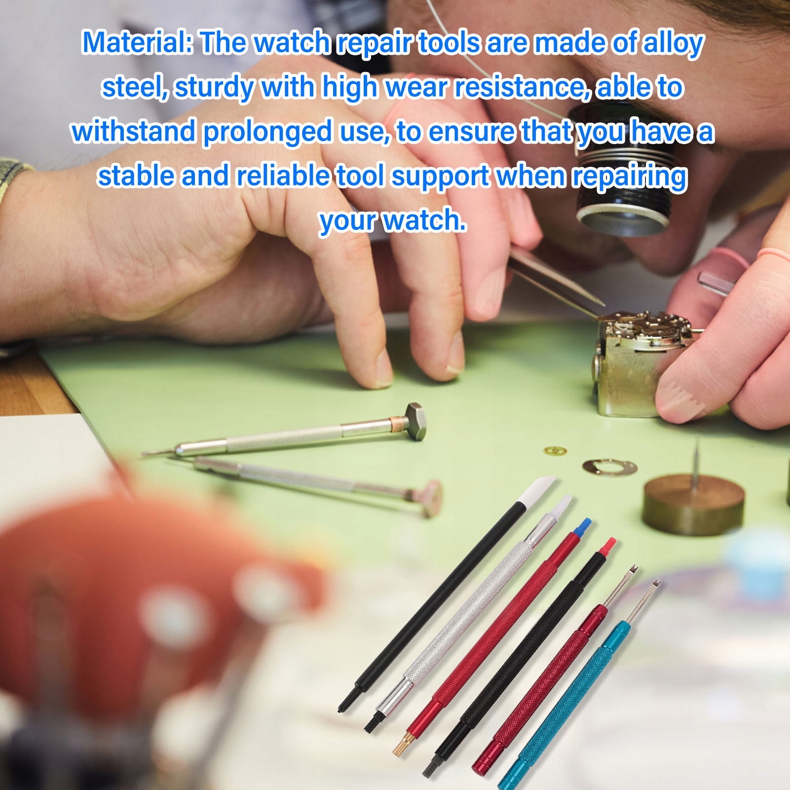 1. Материал: Инструменты для ремонта часов сделаны из сплавной стали, сплошной с высокой износостойкой стойкостью, способны выдерживать длительное использование, чтобы убедиться, что у вас есть стабильная и надежная работа инструмента при ремонте часов.