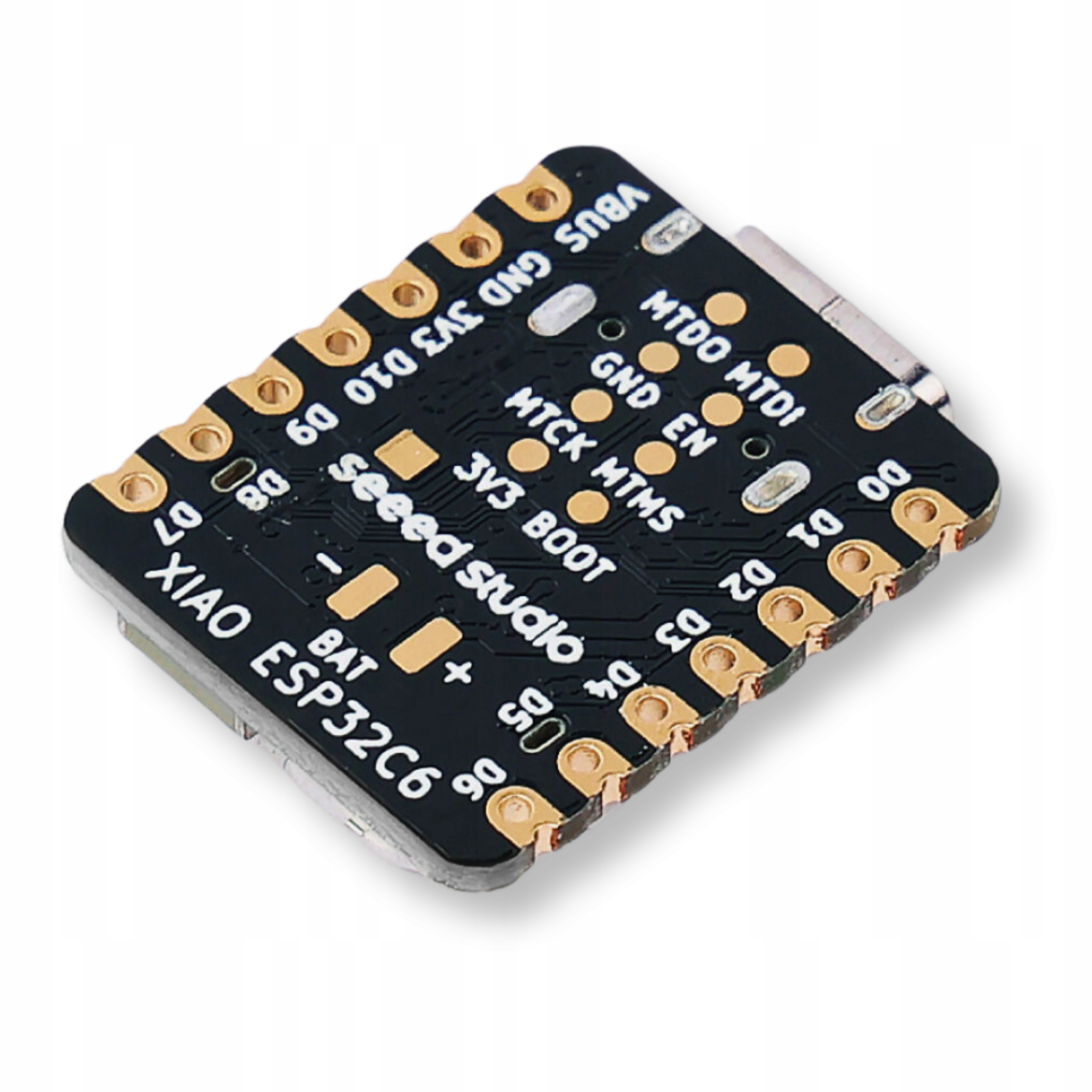 См. Studio xiao ESP32C6 -это модуль, основанный на высоко интегрированной системе ESP32-C6 SOC, которая основана на двух 32-разрядных процессорах RISC-V. Модуль имеет высокопроизводительный процессор (HP), работающий с частотой до 160 МГц и 32-разрядного процессора RISC-V с низким содержанием (LP), который может работать с частотой до 20 МГц . Чип содержит 512 КБ SRAM памяти и флэш -память 4 MB , которая обеспечивает больше места для программирования и открывает новые возможности для сценариев управления IoT