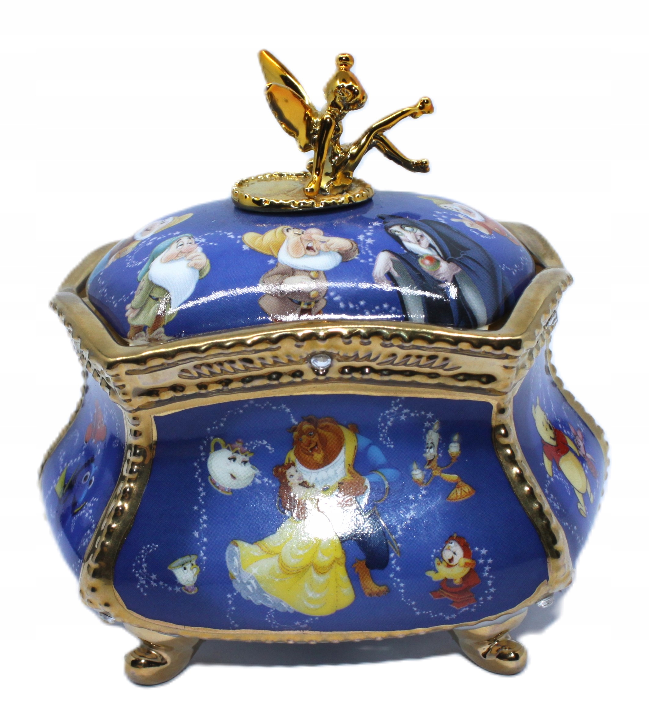 МУЗЫКАЛЬНАЯ ШКАТУЛКА ИЗ ФАРФОРА, УКРАШЕННАЯ ЗОЛОТОМ И КРИСТАЛЛАМИ СВАРОВСКИ, ПРОНУМЕРОВАННАЯ, ПОДПИСАННАЯ