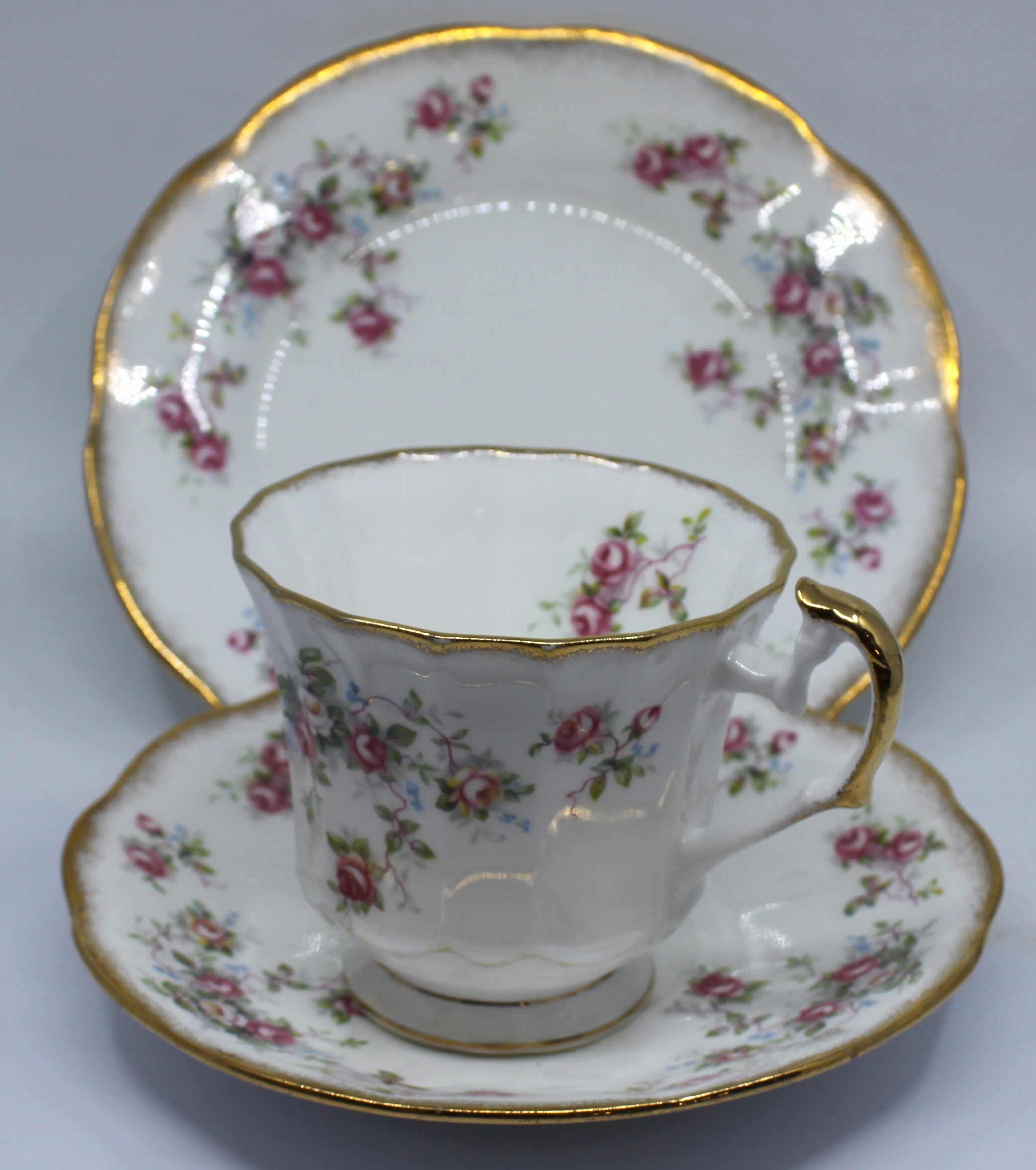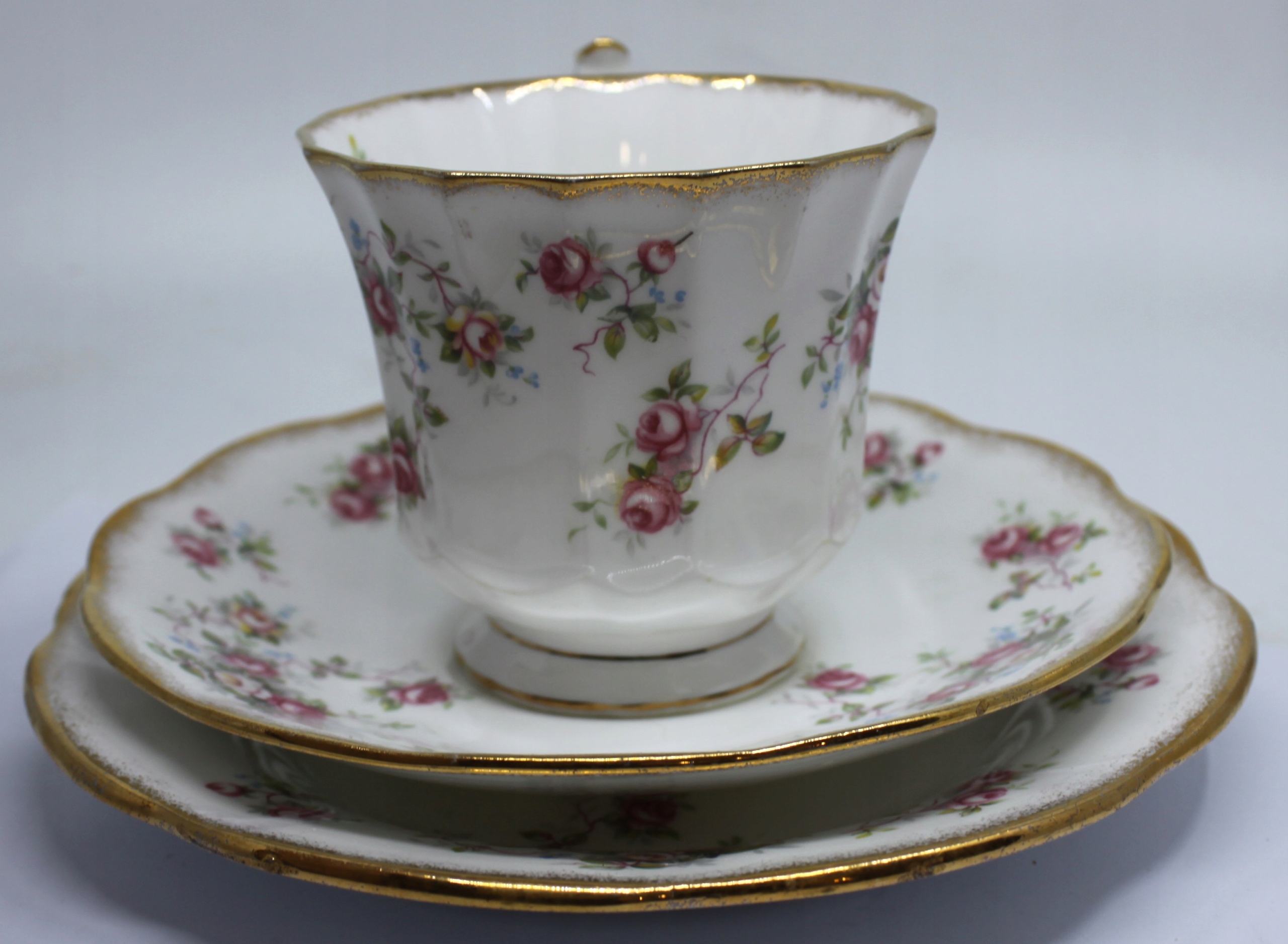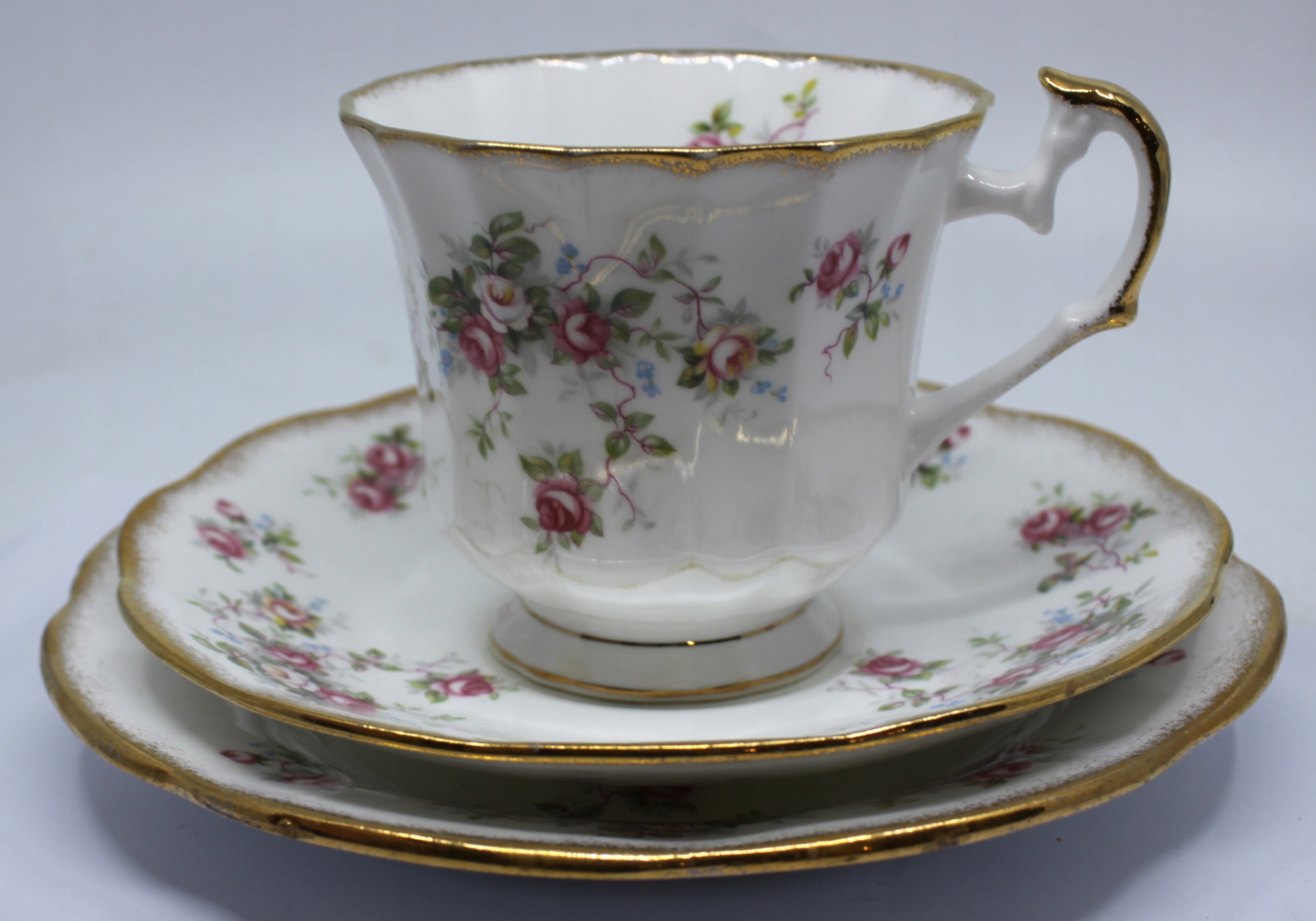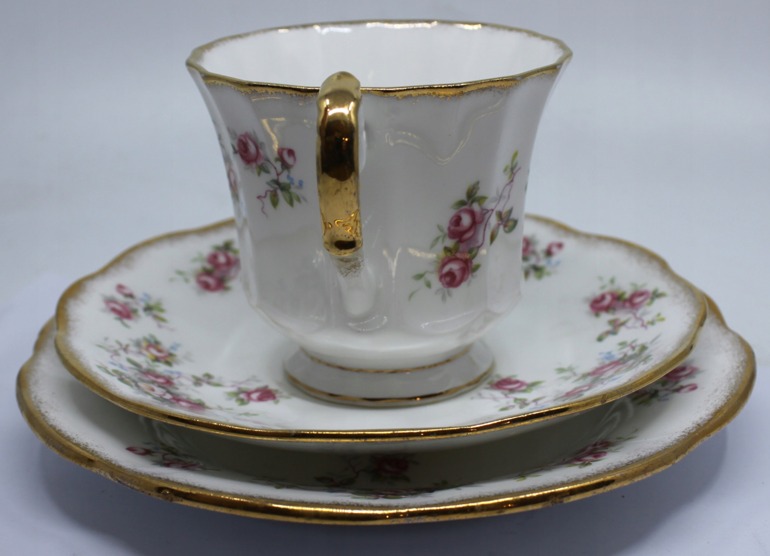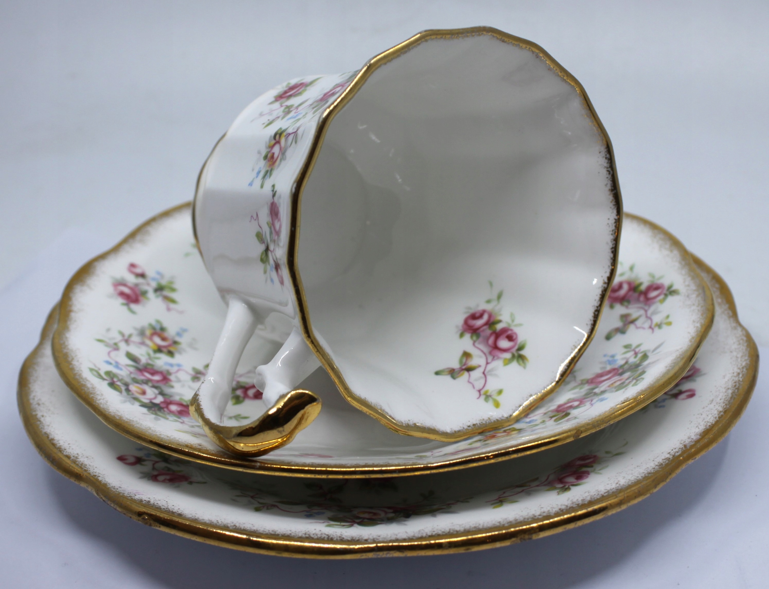 ЧАШКА С СОУСОМ И ТАРЕЛКА ИЗ КОСТЯНОГО ФАРФОРА ROYAL, ОТДЕЛКА 22-КАРАТНОГО ЗОЛОТА, ПОДПИСЬ