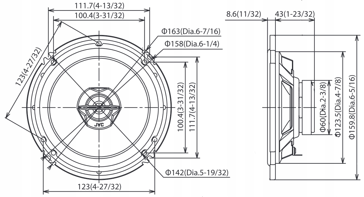 - два оригинальных громкоговорителя JVC 165 мм/16,5 см