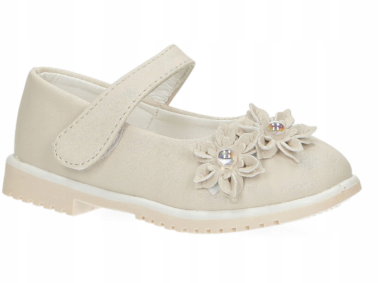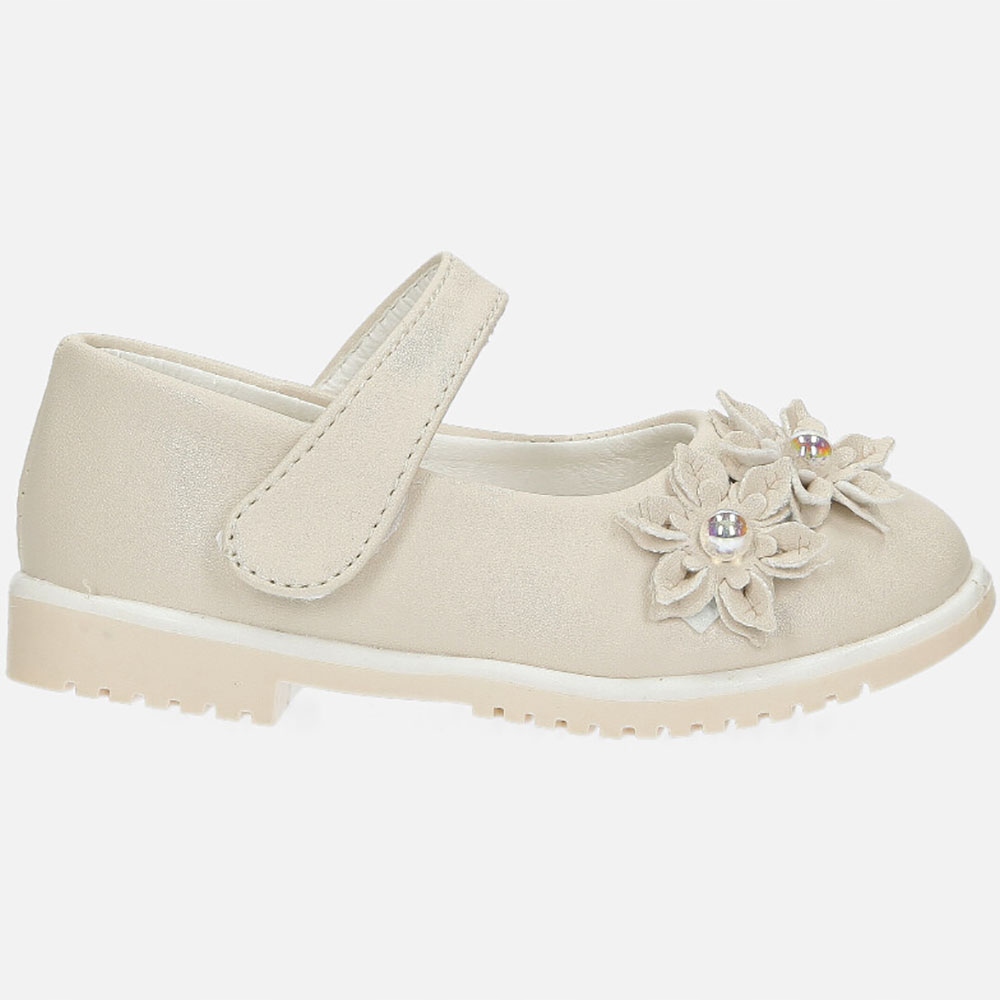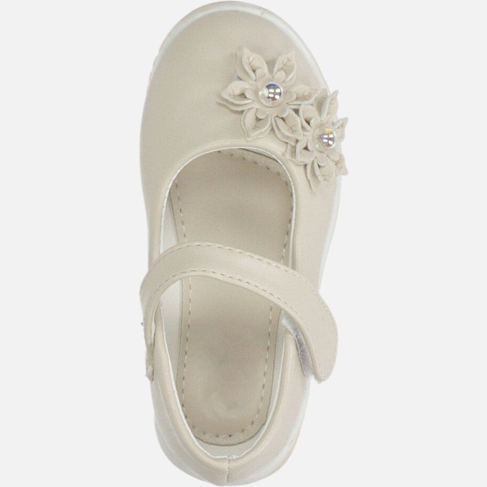 Бежевые балетки с цветами на липучке, Casu 007-1