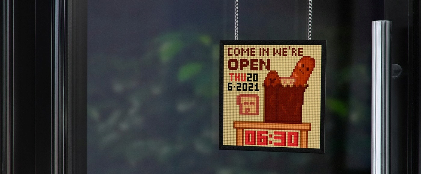 Pixoo-64 – это еще и деловое украшение. Вы можете настроить его отображение для отображения приветственного сообщения, информирования о рекламной кампании или просто украсить свой магазин, разместив, например, логотип. В его мобильном приложении была огромная онлайн-галерея на выбор.