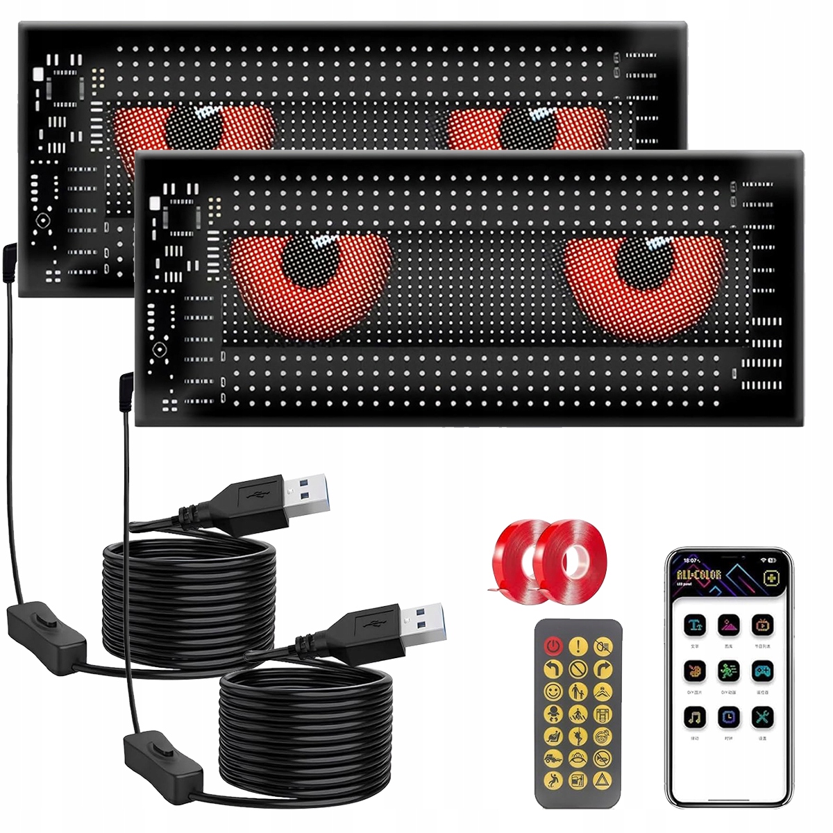 ⭐⭐⭐ ⭐⭐⭐ ⭐⭐⭐ Затягивание 2 штук светодиодных глаз для дьявола для автомобилей, светодиодные глаза для грузовиков, гибкий светодиодный экран, программируемый светодиодный дисплей, знак с подсветкой с прокруткой светодиодным текстом, персонализированная отметка освещения для пассажирских автомобилей, грузовиков, текст, граффити | Bluetooth, управление с использованием приложения Smart App/Remote Dotion, USB 5 В/2 A⭐⭐⭐