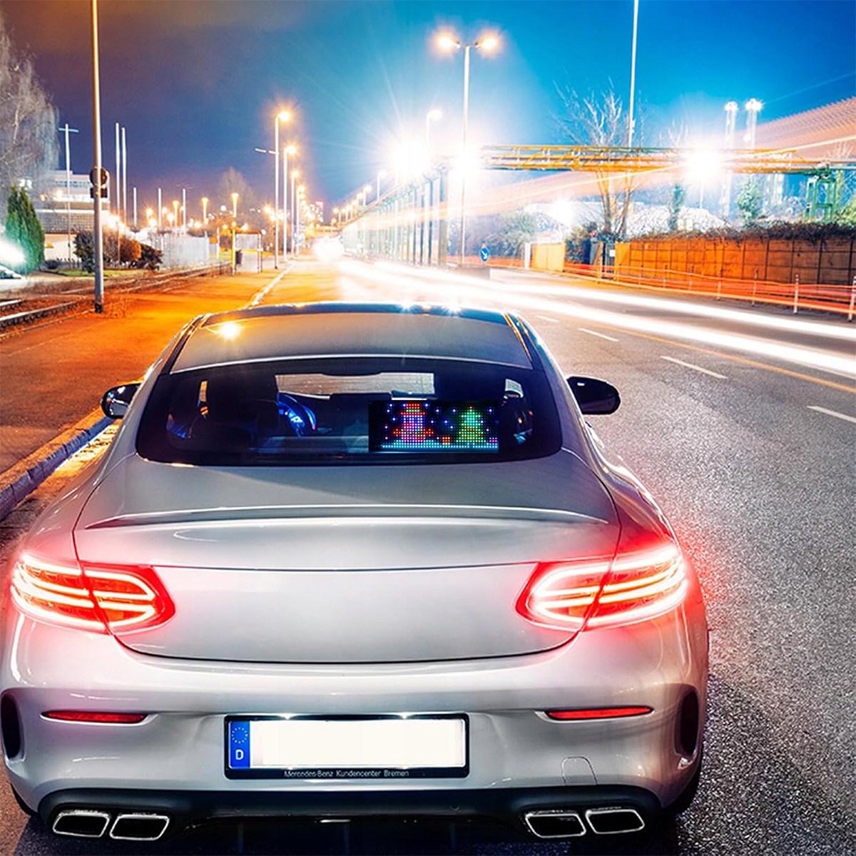✅ Светодиодный управление светодиодом в автомобиле с использованием смартфона: b> reply -free control с использованием специального мобильного приложения. Выберите из разных дизайнов глаз или создайте свои собственные DIY и текстовую анимацию, чтобы выразить свой уникальный стиль. Он поддерживает отображение текста на английском, немецком, польском, турецком и многих других языках.