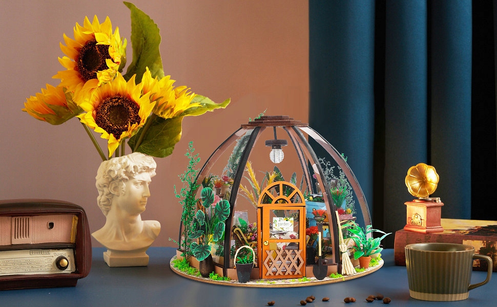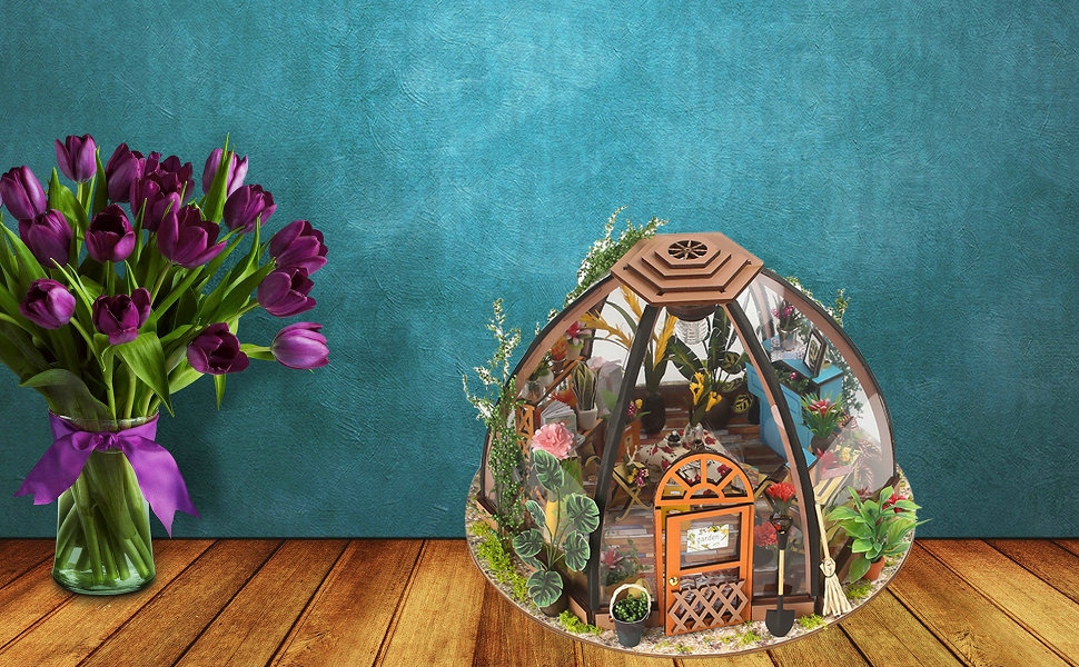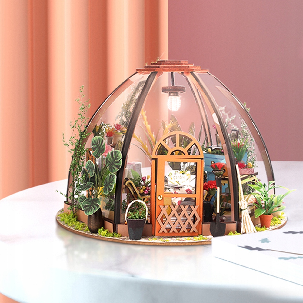 Сделай сам ЦВЕТНИК ТЕПЛИЦА 3D ПАЗЛ ФЛОРИСТ МИНИАТЮРНЫЙ ДОМ СВЕТОДИОДНЫЙ ПОДАРОК