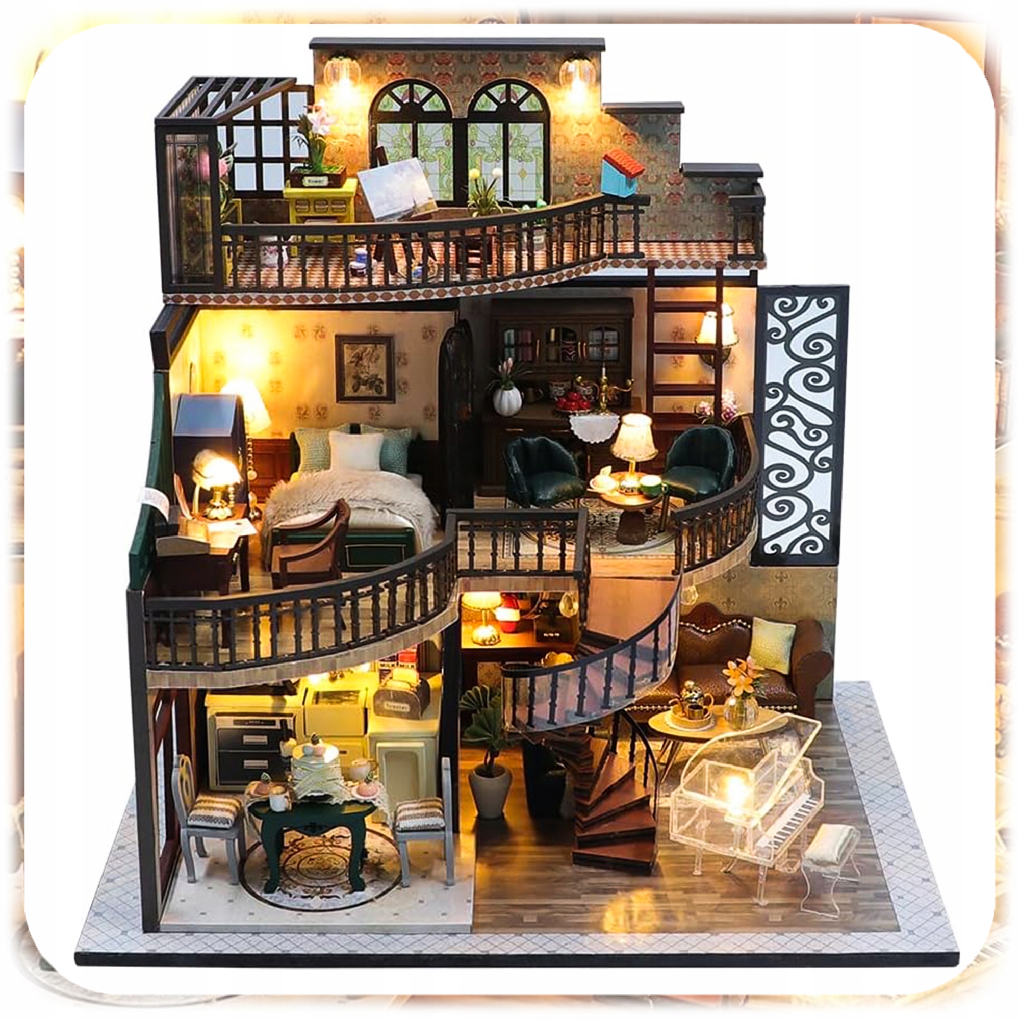 DIY DOWLHOUSE Деревянный 3D светодиодный многосторонний ретро -подарочный павильон