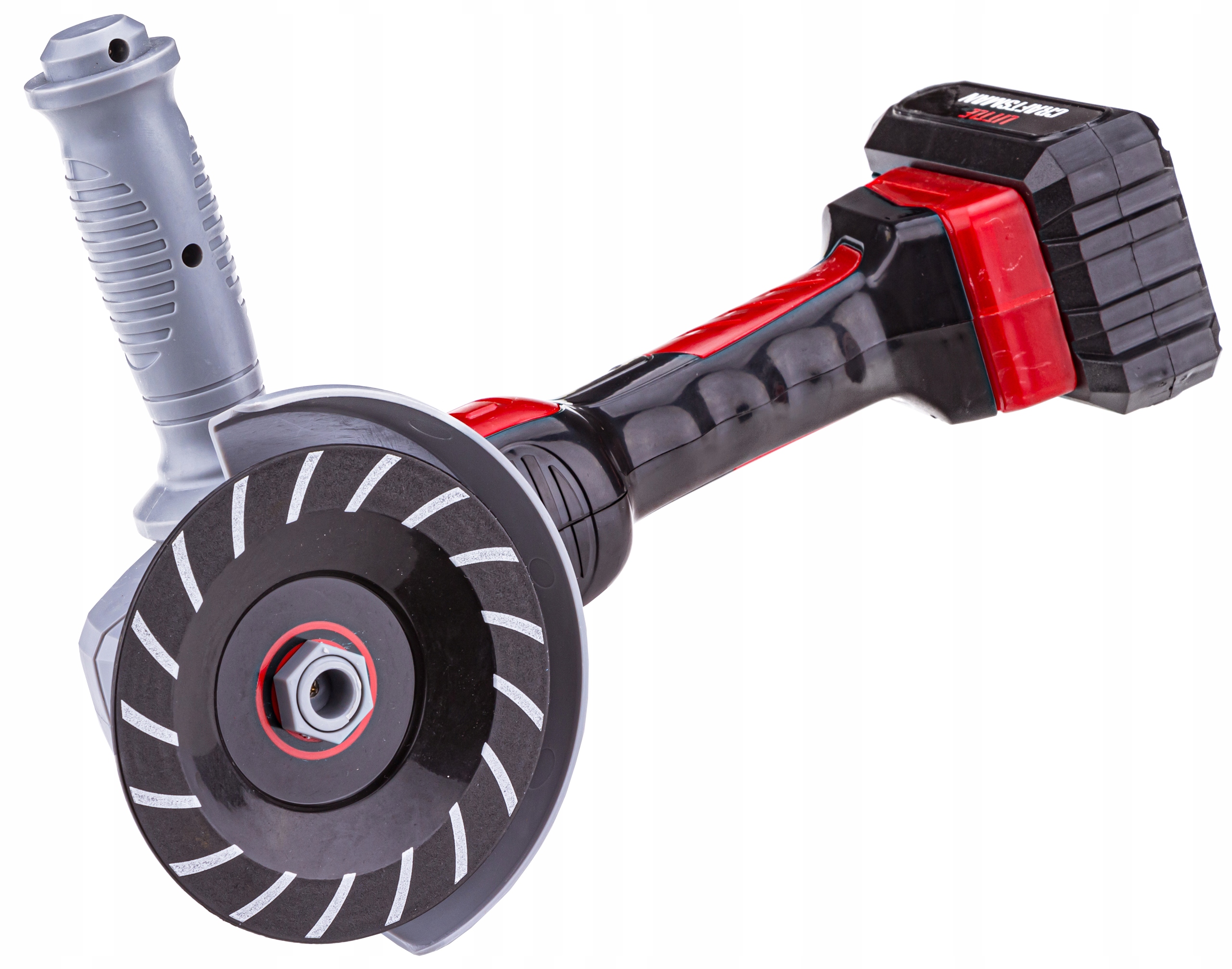Углошлифовальная машина имеет вращающуюся головку и 4 сменных диска - которые мы можем менять в зависимости от наших потребностей.