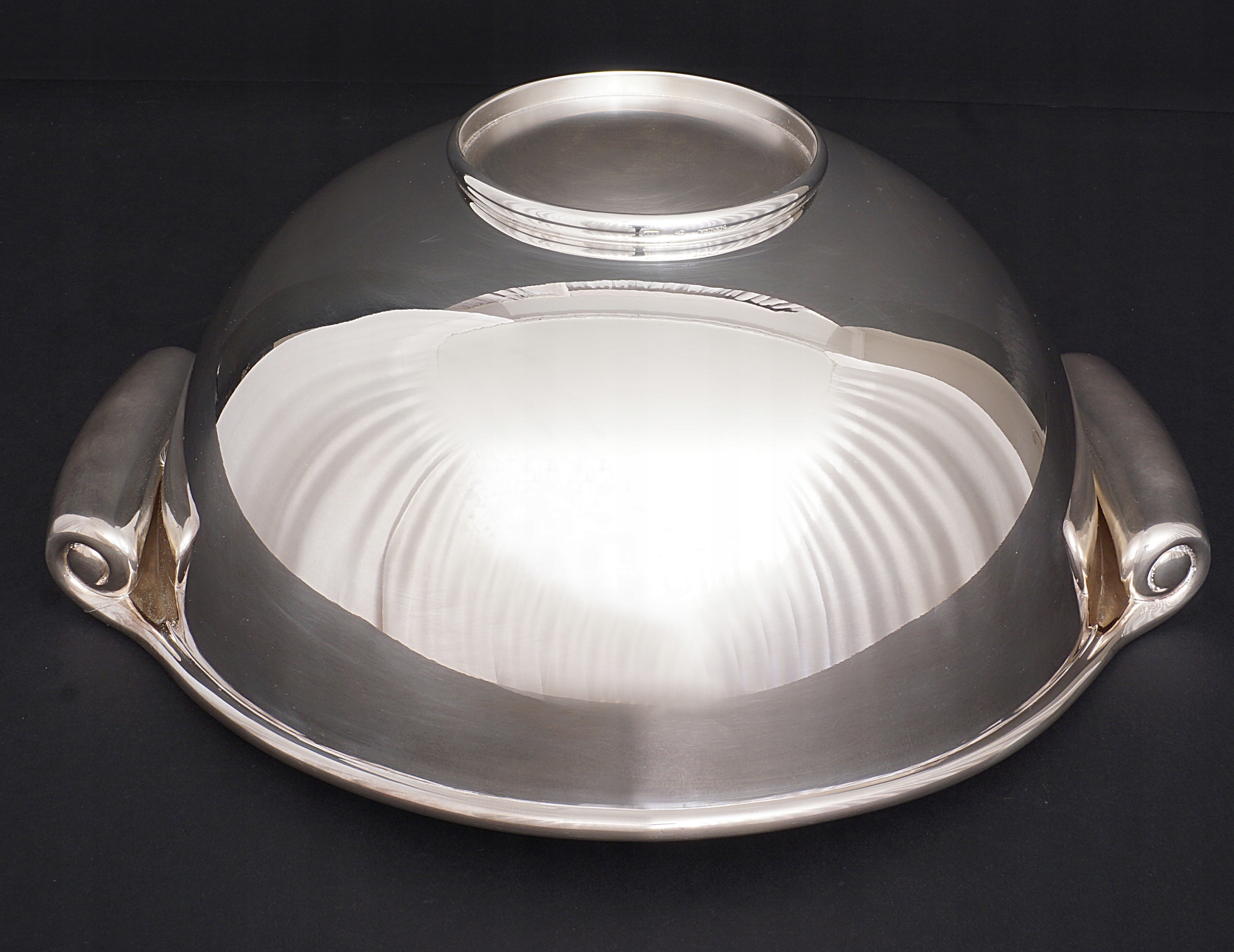 Вес серебра 1460 грамм, диаметр 34 см, высота 13 см.