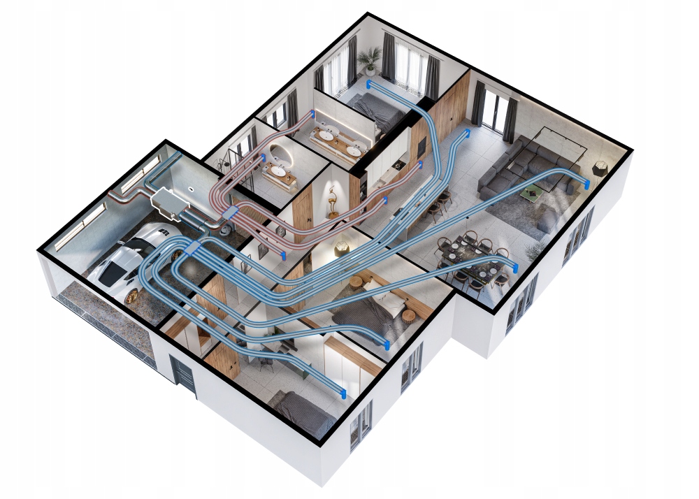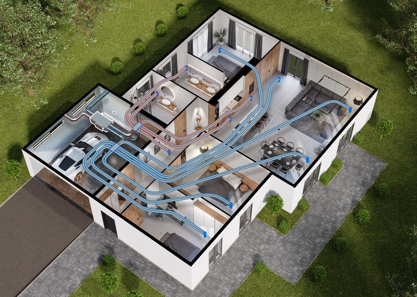 ⭐ Проектирование механической вентиляции с рекуперацией тепла - рекуперация тепла для односемейного дома площадью до 270 м² б>(до 2 этажа). создается на базе трубной системы FLEX диаметром ⌀63, ⌀75, ⌀90 или плоской ПЛОСКОЙ и ОЦИНКОВАННОЙ.