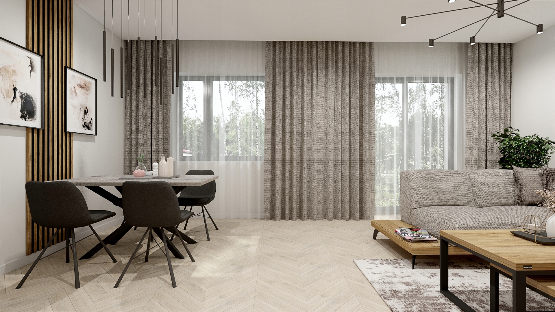 -после оплаты аукционного сбора в размере 249 злотыхи предоставления данных по проекту Покупатель получает первую версию проекта в виде иллюстративных визуализаций (в разрешении HD 1920х1080, 6 штук на комнату) в качестве как на прилагаемых фотографиях (около 2 дней). Покупатель может предложить одну серию из максимум 5 исправлений (исправление – это замена товара, например, замена плитки, краски, мебели, светильников, исправления не касаются изменения размеров помещения и не касаются реконструкции мебели, изготовленной на заказ). Отвечаю на запросы: вношу корректировки в проект "за один раз" и создаю под них визуализации. Таким образом, вы получите 6 штук визуализации - т.е. вторую версию проекта с исправлениями (около 2 дней)