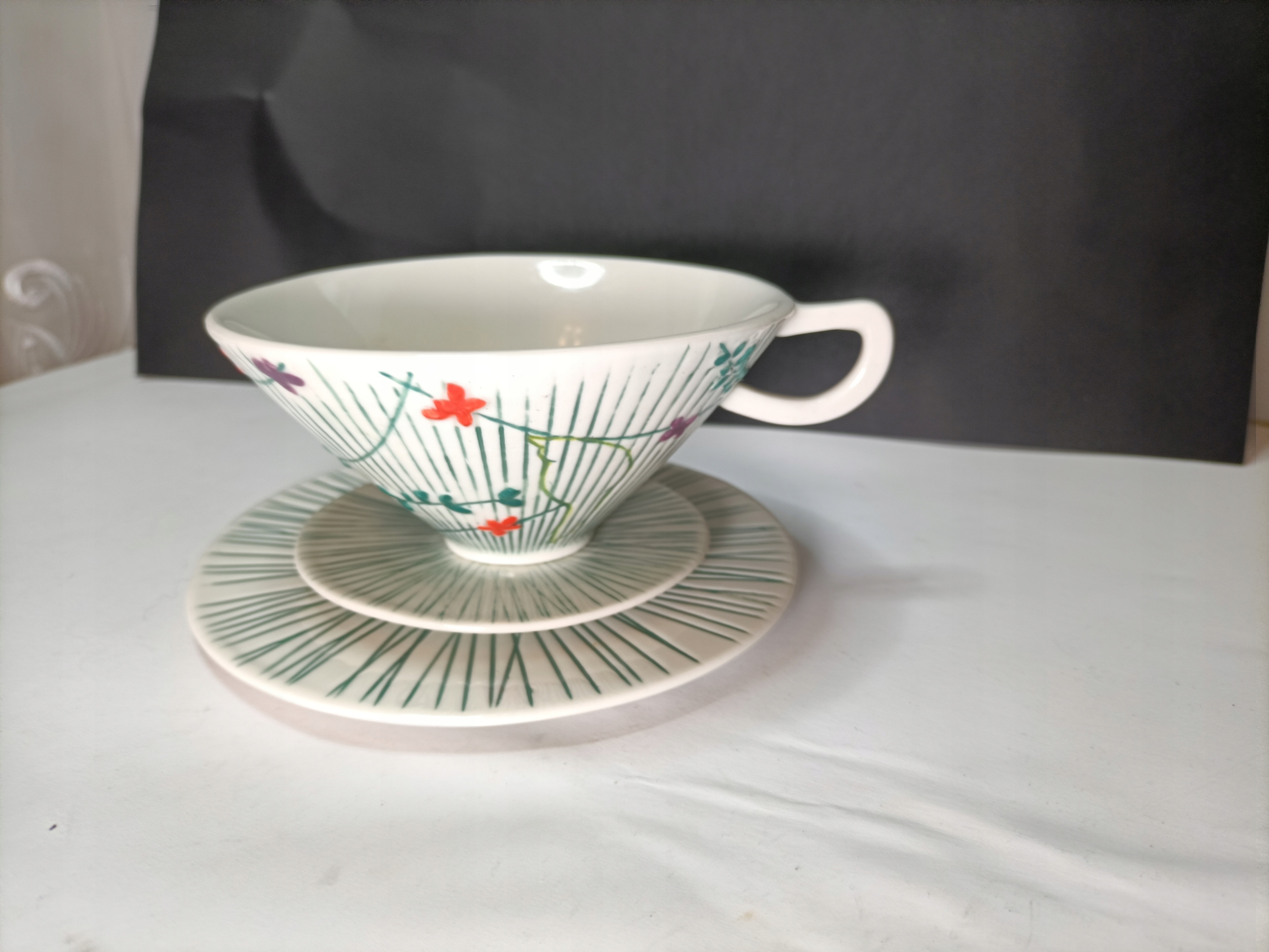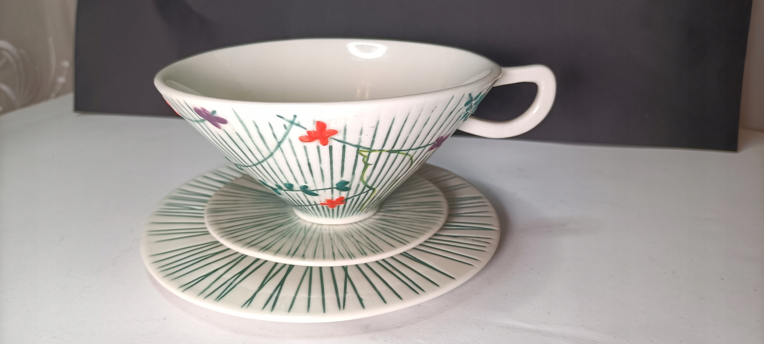 Отлично смотрится на столе, можно комбинировать с другими моделями серии (чашки и блюдца соединены между собой)