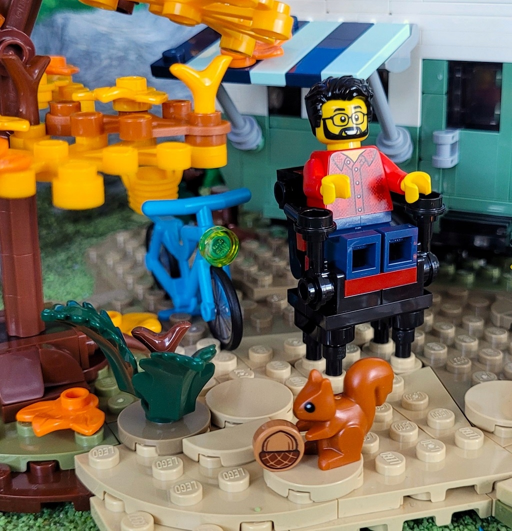 Вы также найдете здесь типичные лесные существа, такие как птица, белка и несколько бабочек. Кемпинговые предметы для комфорта, такие как велосипед, функциональный кемпинг и дополнительное дерево. И, конечно, костер и аксессуары для выпечки пены!