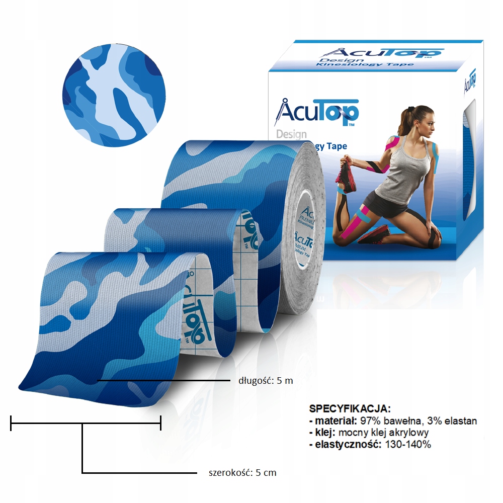 Рулон AcuTop Premium изготовлен из высококачественного хлопка, без латекса. Поэтому оно не должно вызывать раздражения. Высокая эластичность, на уровне 130-140%, имитирует кожу человека, ее параметры и эластичность, поэтому краны безопасны для нее, а также хорошо пропускают воздух. Волнистая поверхность с гипоаллергенным акриловым клеем обеспечивает хорошее прилегание и длительное удержание на теле. Его термопластичность, которая включает расширение при нагревании и сжатие при охлаждении, означает, что клей активируется только при контакте с кожей. Водостойкая формула позволяет вам принимать ванну или посещать бассейн в обычном режиме. Приложение должно действовать несколько дней. Все зависит от использования и места приклеивания. Когда мы замечаем, что лента начинает отслаиваться на концах, желательно ее поменять. Схематические линии на нижней стороне ленты позволяют даже начинающим пользователям вырезать нужное приложение.