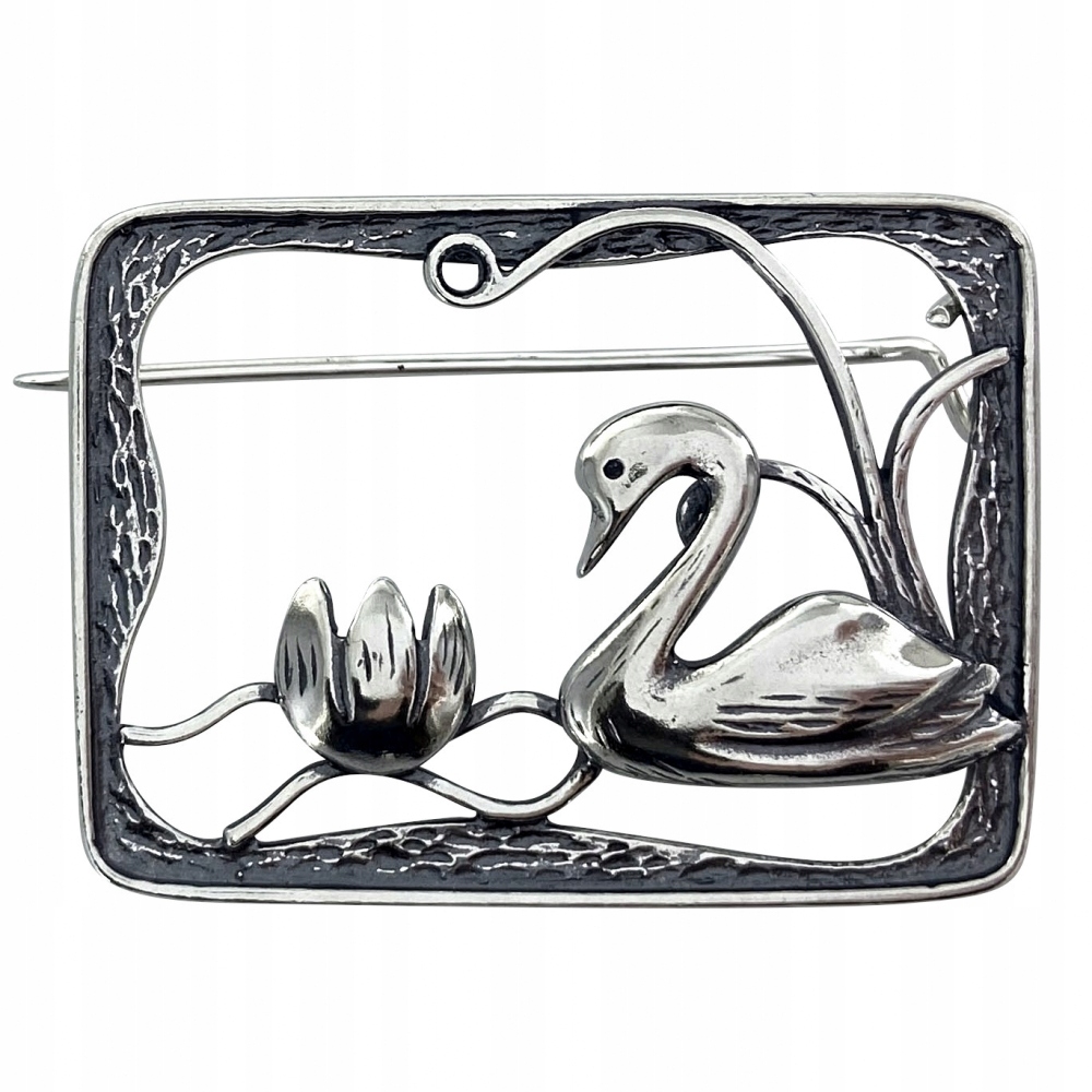 Ищете уникальное украшение? Эта брошь определенно для вас! На нем изображен красивый пейзаж, лебедь в декорациях природы. Брошь, прикрепленная к костюму, непременно вызовет восхищение и интерес. Это, несомненно, украшение, которое невозможно оставить без внимания. Он полностью изготовлен из полированного серебра 925 пробы, что обеспечивает его долговечность. Дополнительно она покрыта темным оксидом, который подчеркивает детали броши.