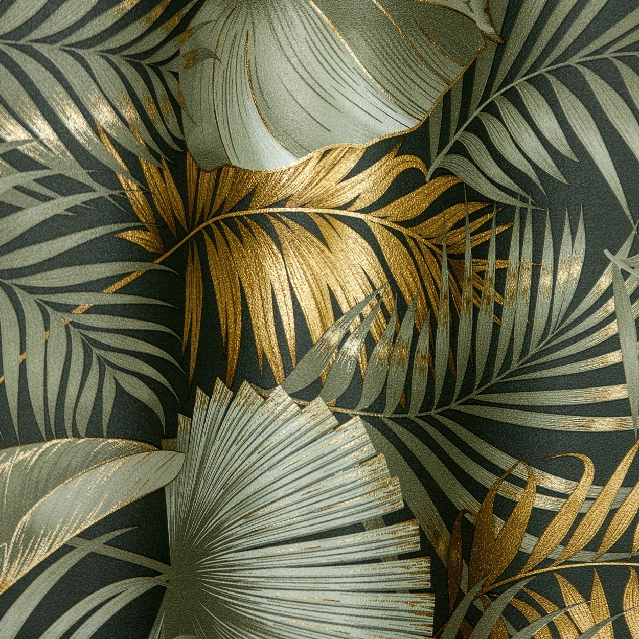 Дизайнерські шпалери Світло-зелене та золоте ЛИСТЯ в стилі GLAMOUR
