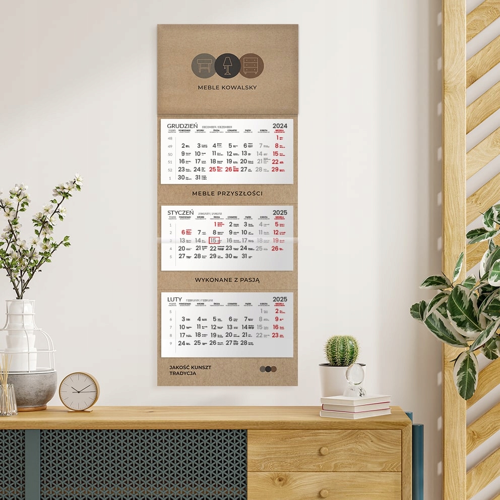 Ремесленный настенный календарь из трёх частей 2025