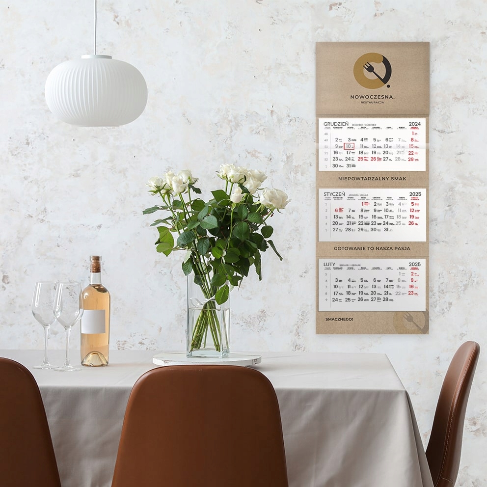 Ремесленный дизайн-календарь из трех частей на 2025 год выпуклый с выпуклой эко-головкой