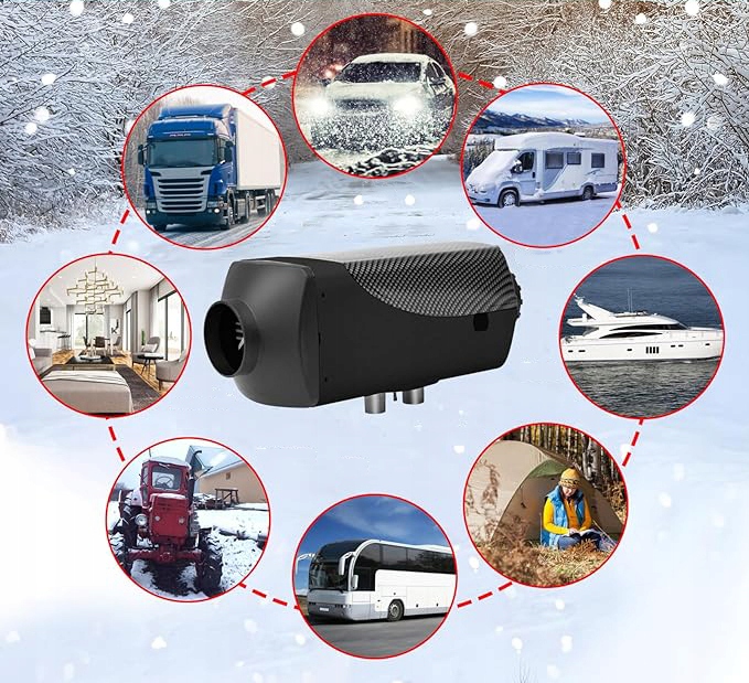 🚚Дизельные воздухонагреватели имеют широкий спектр применения и могут использоваться для обогрева кабин различных транспортных средств, в том числе легковых автомобилей, фургонов, кемперов, грузовых автомобилей, жилых прицепов, инженерной техники, катеров, туристических машин, гаражей и т. д.