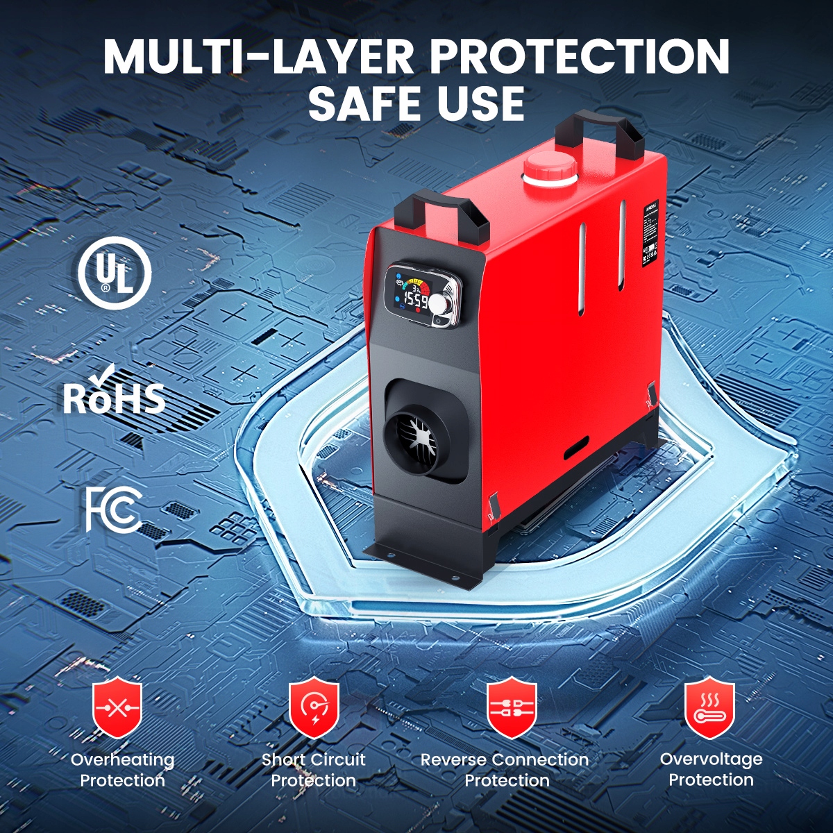 【Широкий диапазон приложений】 Наш дизельный радиатор 12 В оснащен режимом плато. Портативный воздушный нагреватель с дизельным двигателем 12 В и 24 В подходит для использования в автодонях, прицепах для кемпинга, транспортных средствах для кемпинга, ванами и т. Д.
