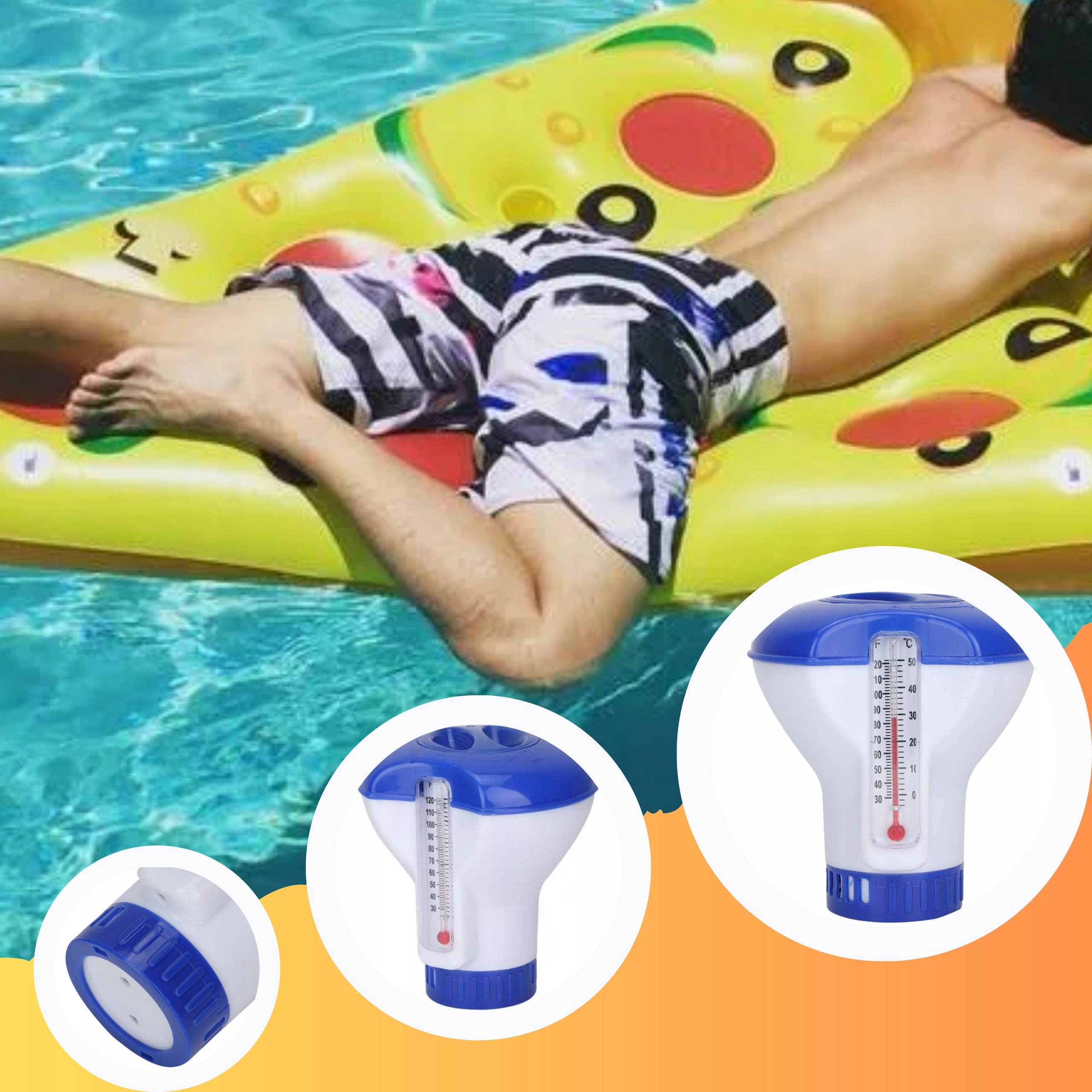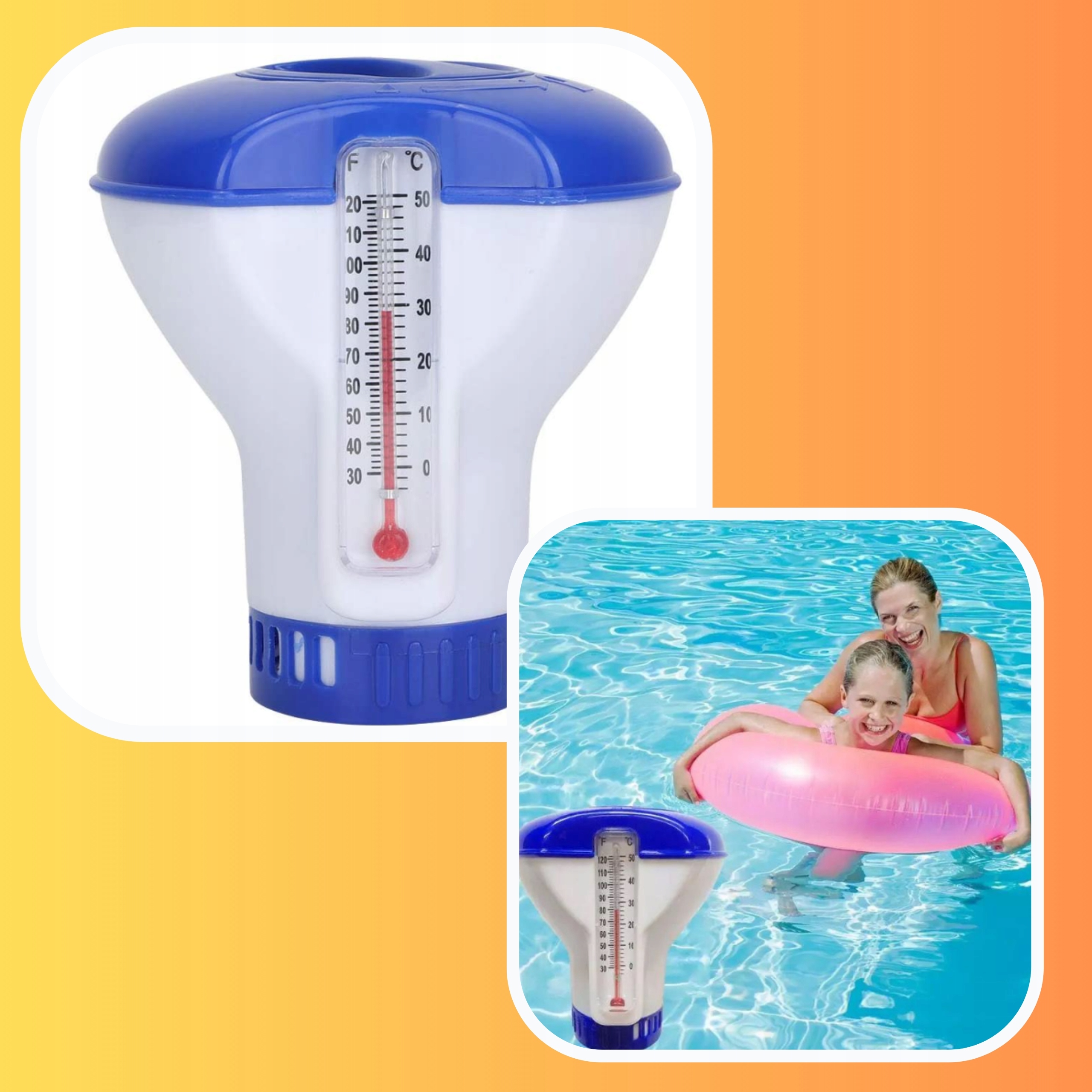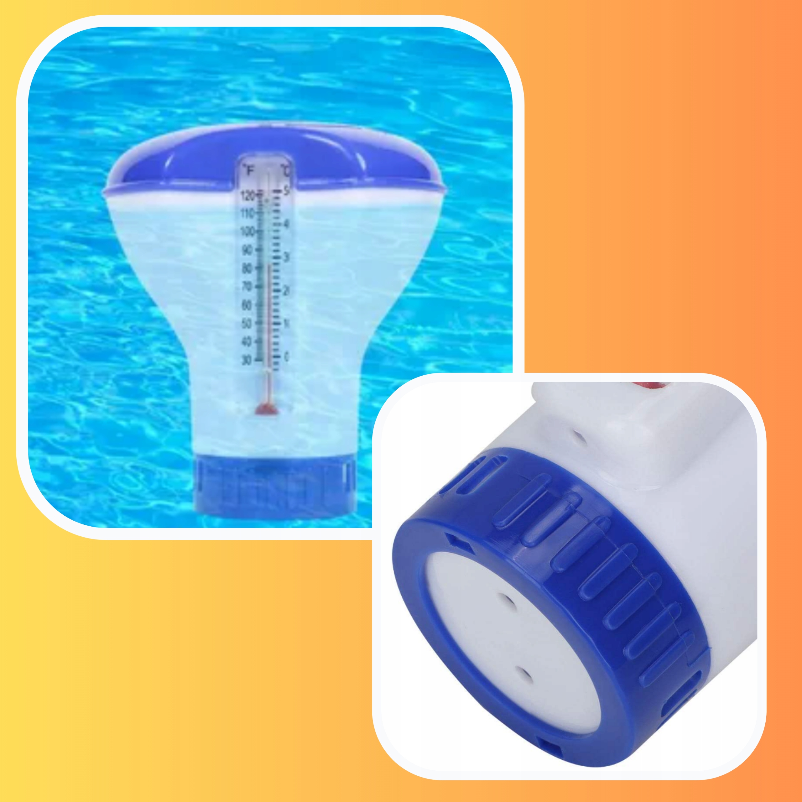 ДИЗЕНСЕР 2в1 З ТЕРМОМЕТРОМ ПОПЛАВОК БУЙ ТЕРМОМЕТР ДЛЯ БАСЕЙНУ ХЛОР 20г