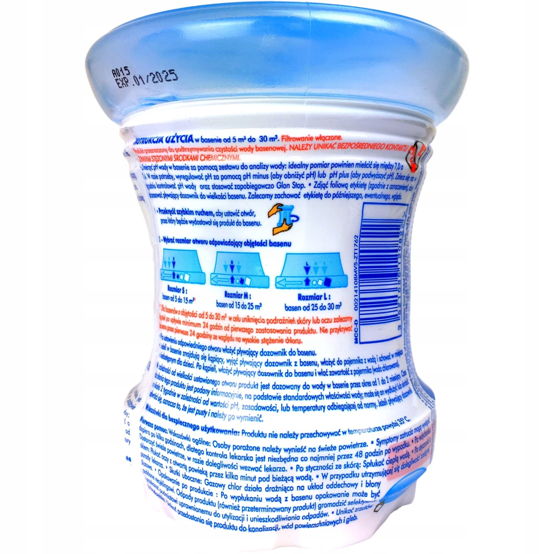 Очень удобен в использовании. использовать с помощью препарата в виде дозатора, который, плавая на воде, автоматически распределяет хлор в соответствующем количестве. Защита до 2 месяцев в зависимости от размера пула.
