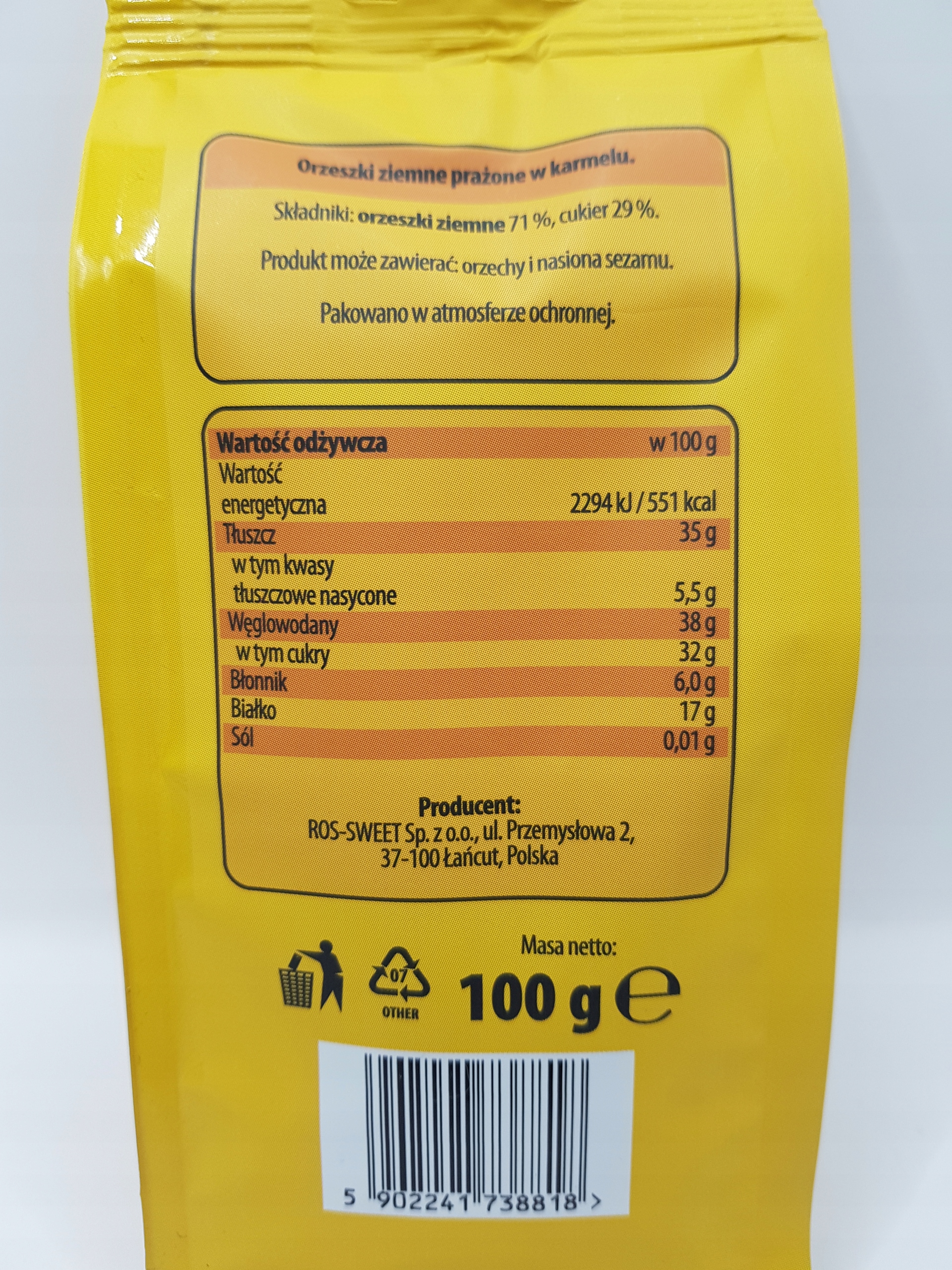 DJ Snack Orzeski Nutszki в карамели - идеальная закуска для всех любителей сладкого и соленого вкуса. Эти хрустящие арахисы покрыты вкусной карамелью, которая придает им уникальный вкус и аромат. Упаковка содержит 100 г орехов, что делает их идеальными для еды как дома, так и при путешествиях. Идеально идеально подходит как разнообразные ежедневные диеты или в качестве закуски для вечера фильма. Попробуйте DJ Snack Orzeszków в карамели и дайте себе сладкое расслабление на некоторое время!