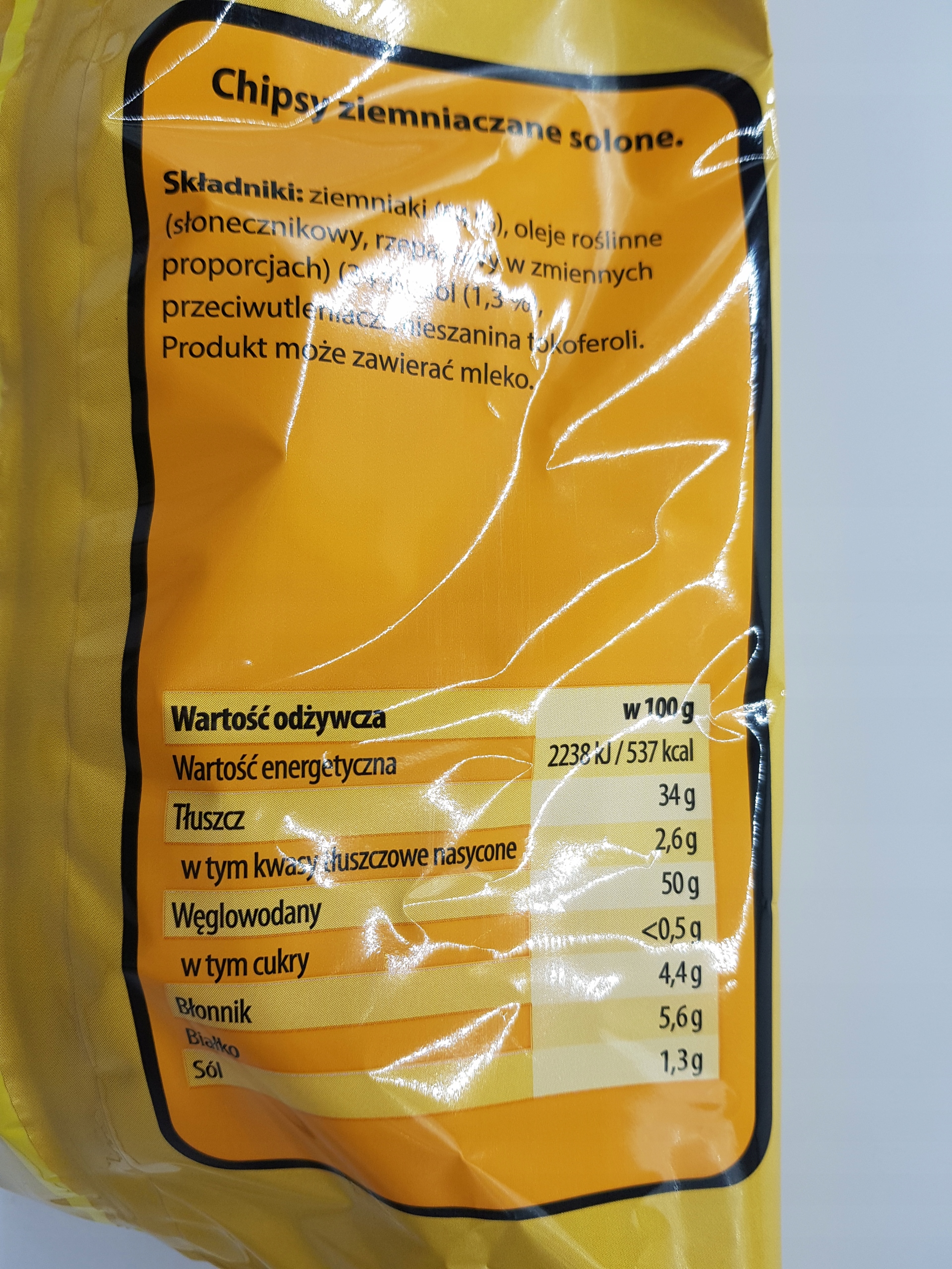 Состав: картофель (64 %), растительные масла (подсолнечник, рапс в переменных пропорциях) (34 %), соль (1,3 %), антиоксидант: смеси токоферола