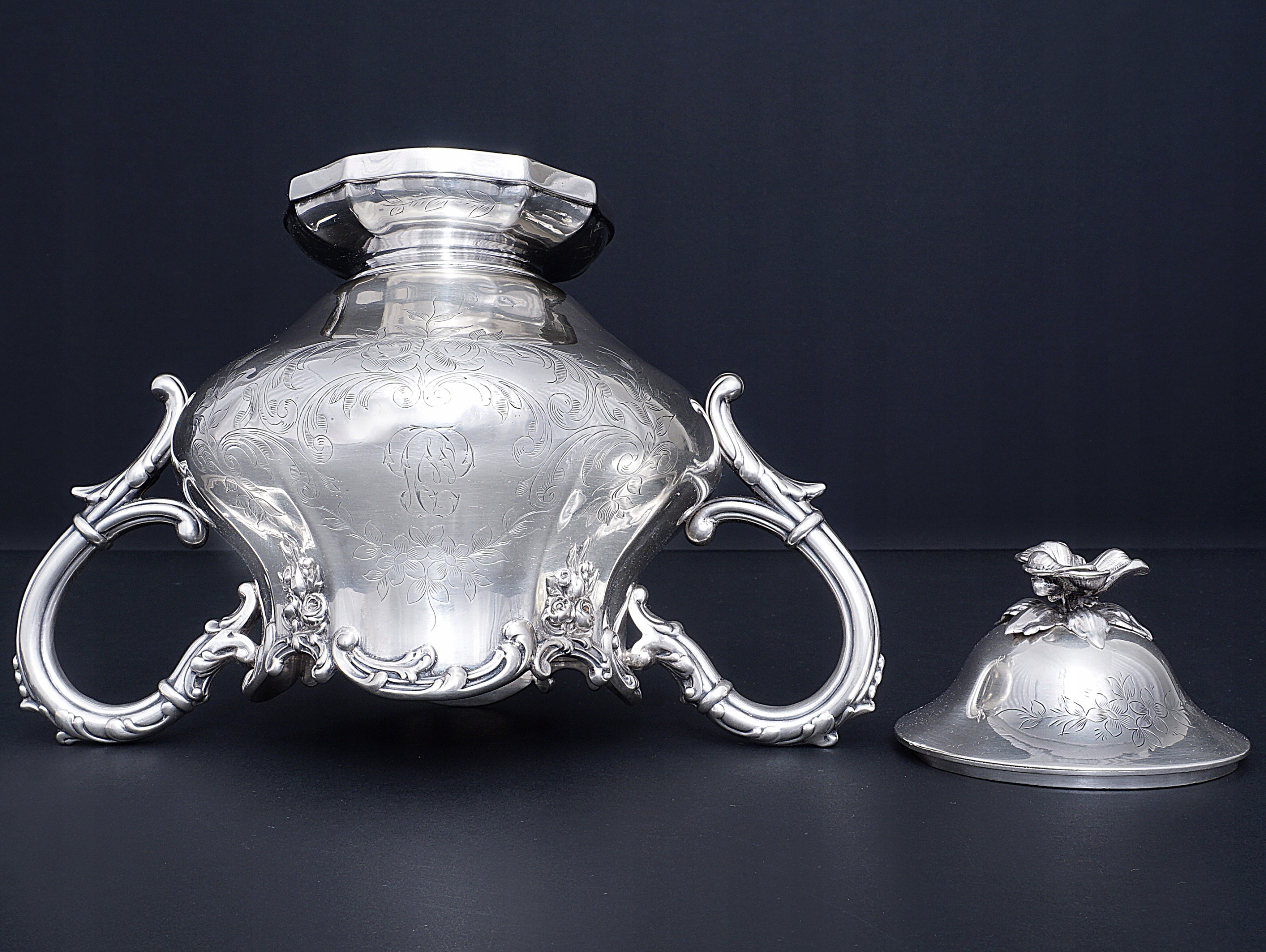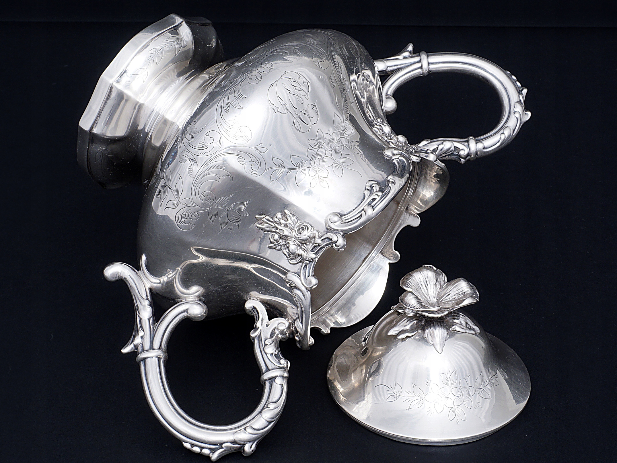 Огромная, цизальная сахарная чаша, сделанная из серебра 950/1000.