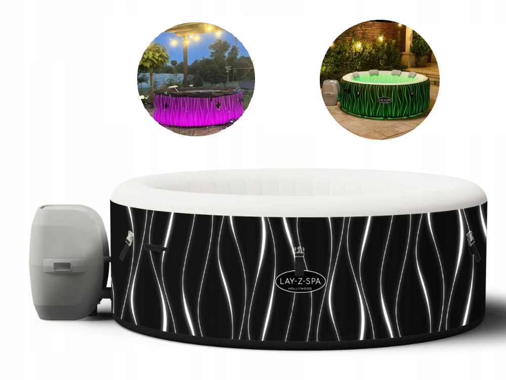 lay-z-spa Hollywood Airjet выделяется с уникальным светодиодным дизайном . Много -колорированная светодиодная полоска с пультом управления позволяет освещению к вашему настроению. Выберите динамические изменения цвета для вечеринки с друзьями или приглушенные, расслабляющие цвета для вечернего отдыха. подсветка Jacuzzi создаст уникальную атмосферу в вашем саду.