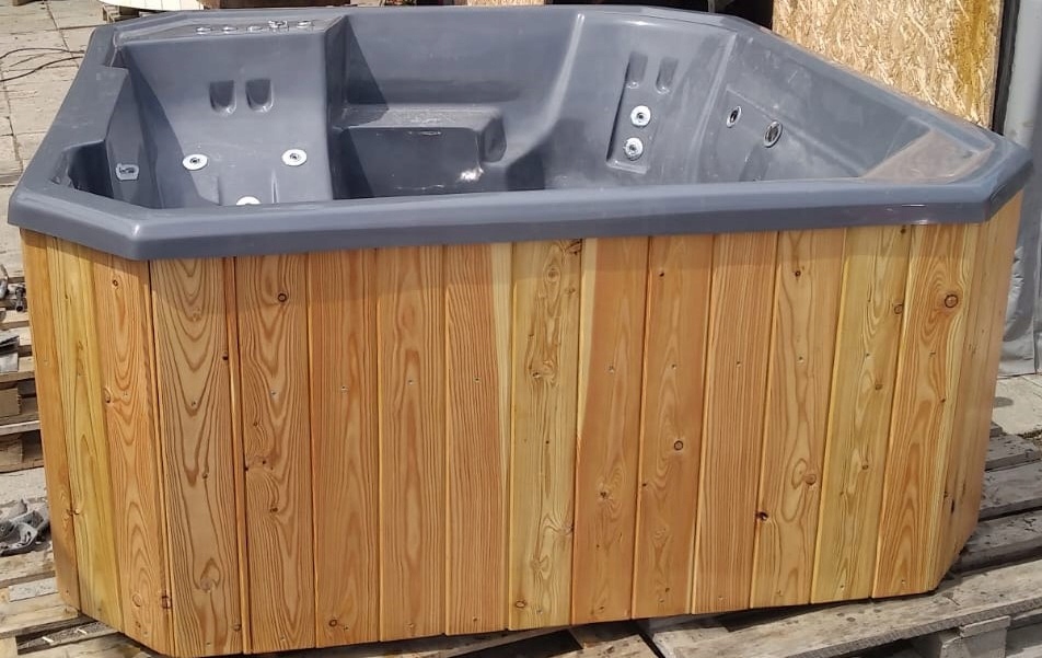 Ванна установлена на прочном каркасе из толстой, пропитанной строительной древесины.