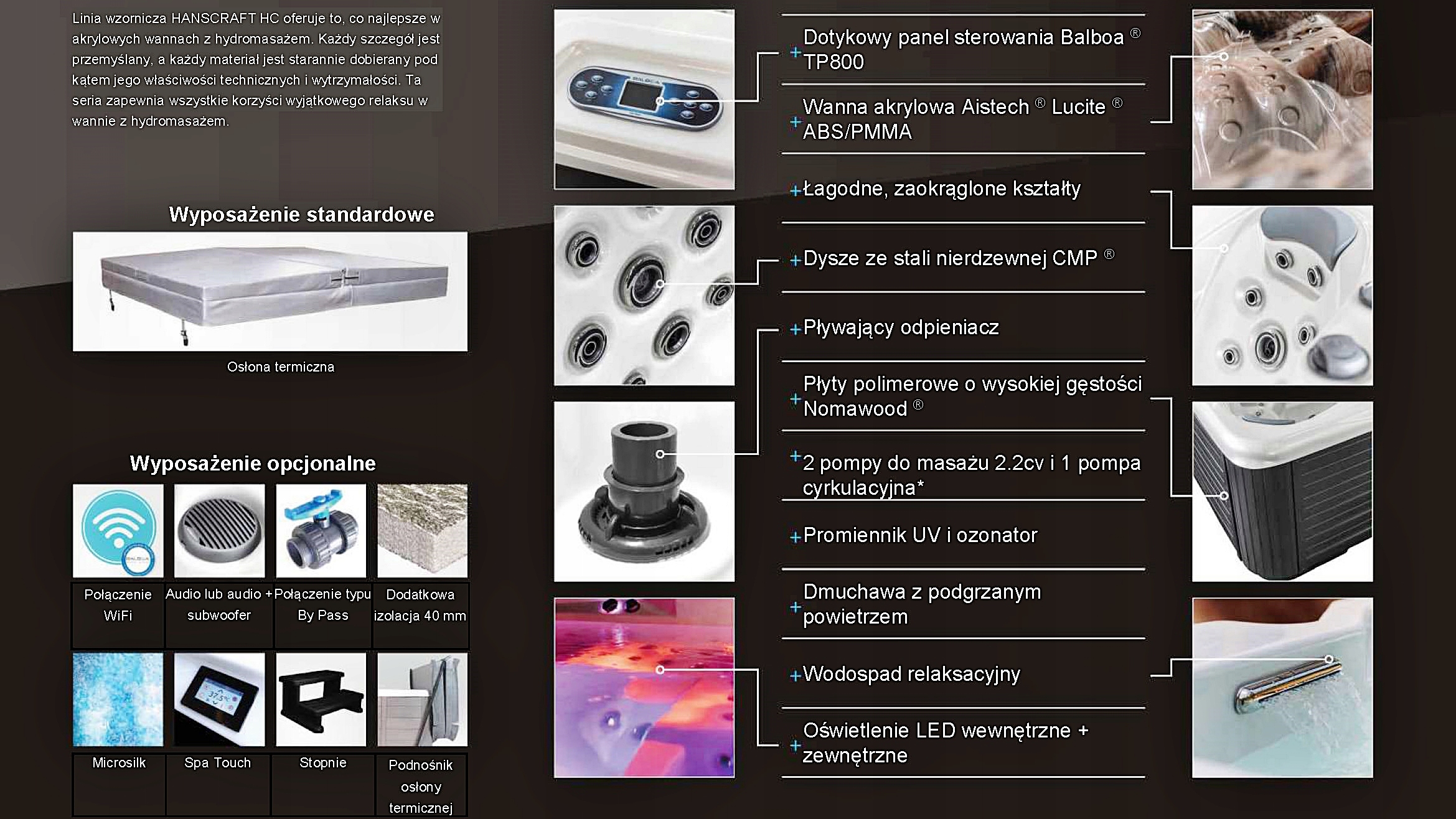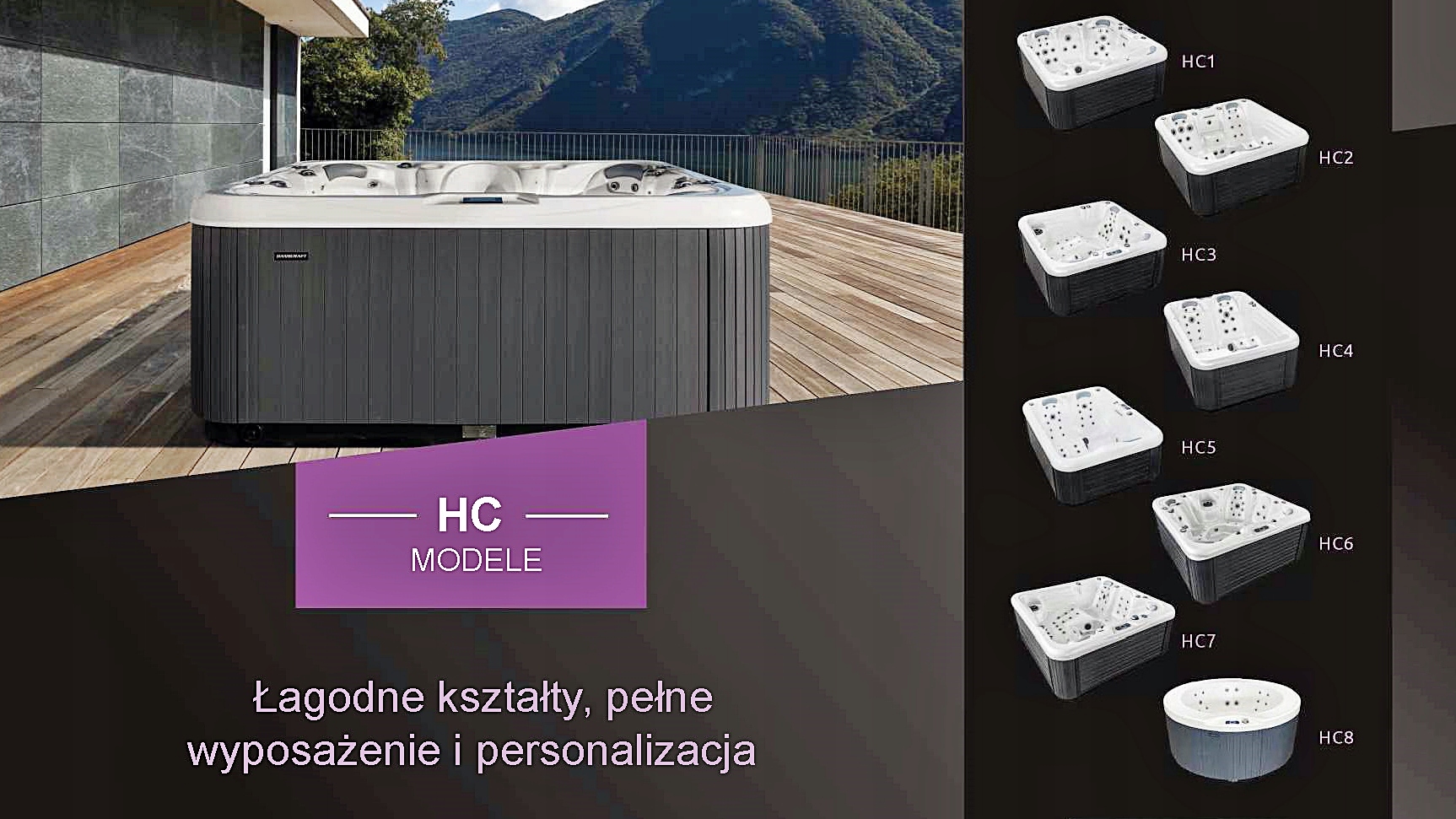 Элегантные закругленные края, первоклассное оснащение и точность до мельчайших деталей. Это отличительные особенности гидромассажных ванн серии HC. Их эргономичная форма обеспечивает телу максимальный комфорт и эффективный гидротерапевтический массаж. Все ванны достаточно просторны даже для высоких людей.