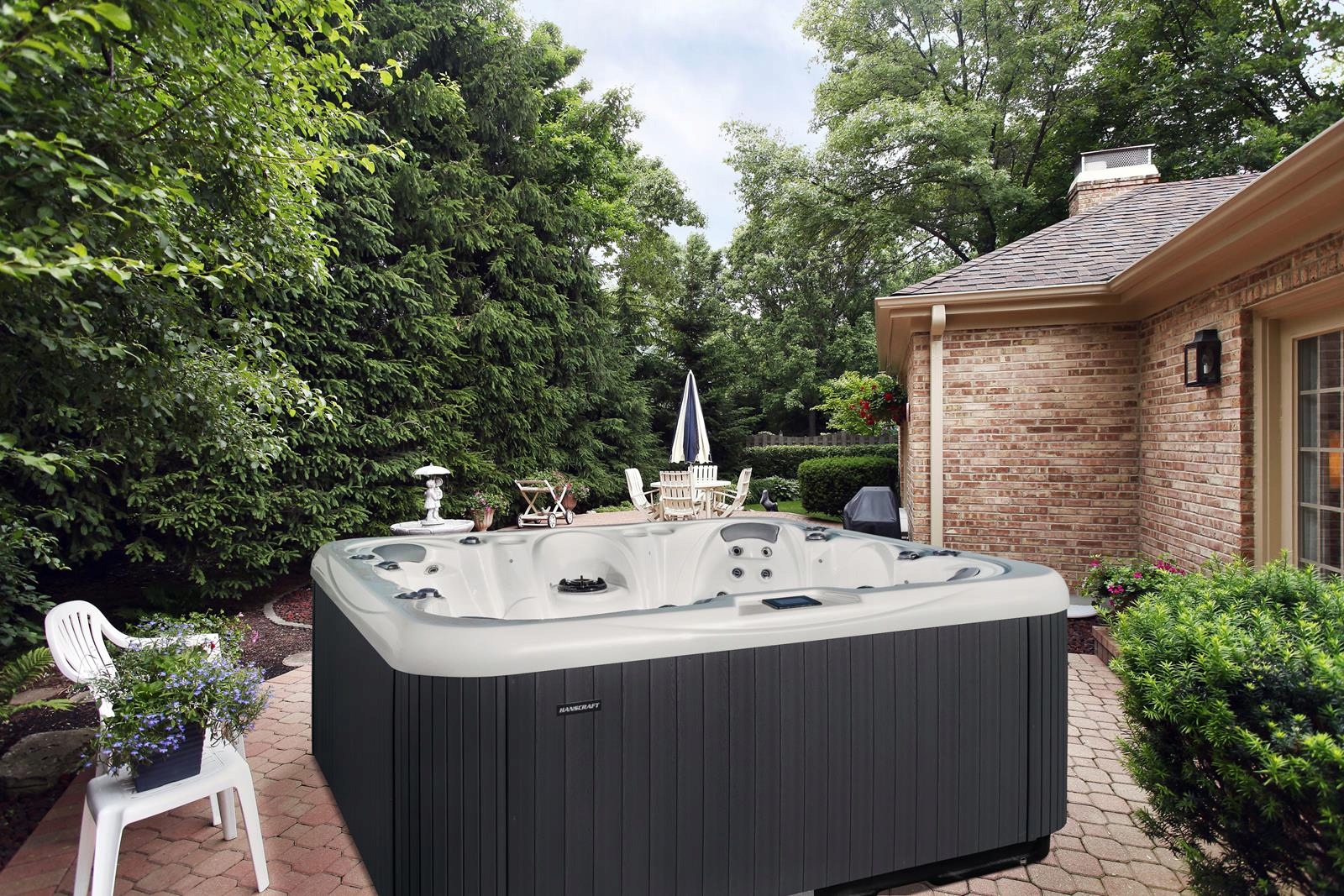 Просторное джакузи, где можно отдохнуть всей семьей. HC7, рассчитанный на 5 человек, предлагает 2 шезлонга и 3 сиденья. Оснащен 61 форсункой (53 гидромассажными и 8 воздушными). В стандартную комплектацию входят красочная светодиодная подсветка, анатомические подголовники, водопад, система управления, титановый водонагреватель, термочехол, система фильтрации и обеззараживания воды в виде УФ-лампы и озонатора, а также прочные боковые панели.