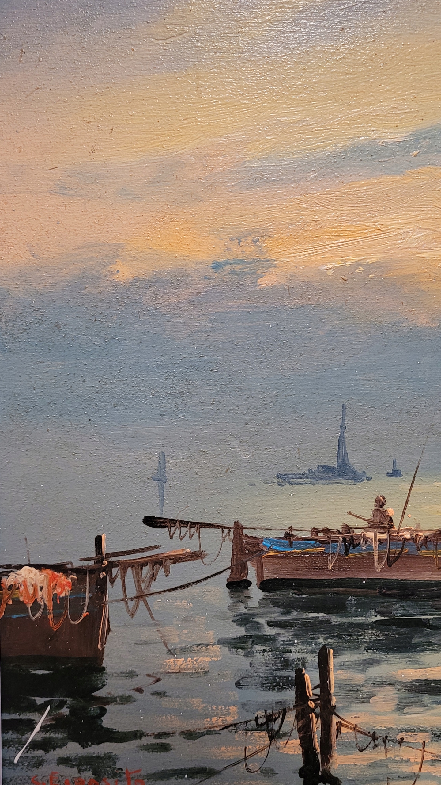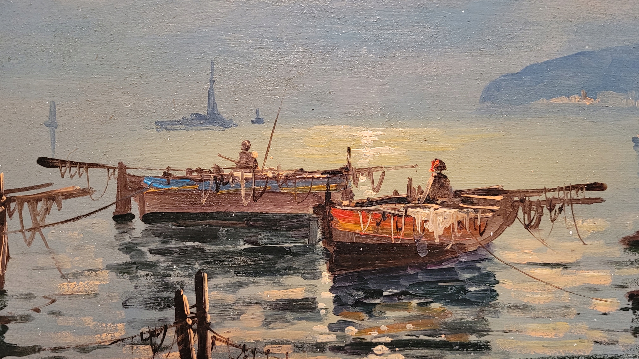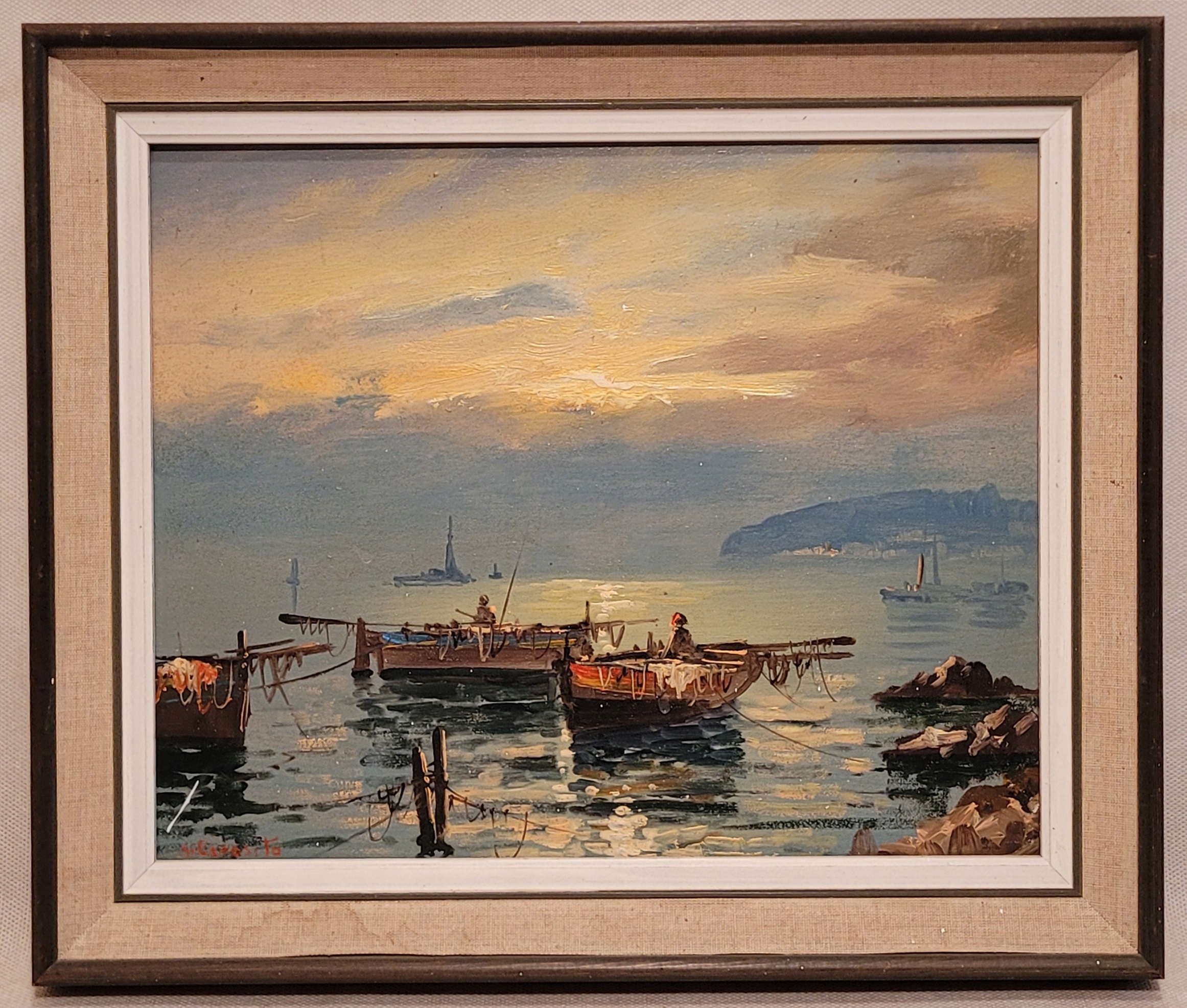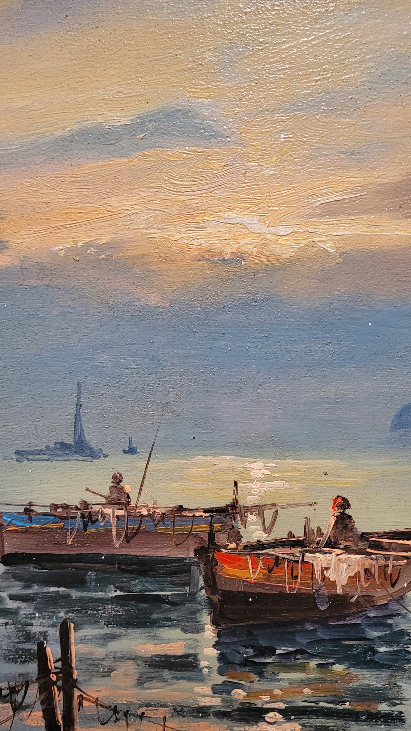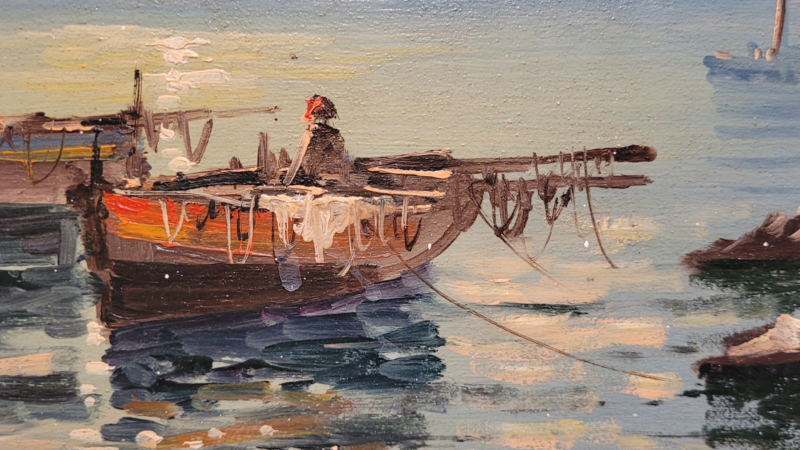 Предмет продажи - красивая, старинная картина маслом " ЛОДКИ В МАРИНЕ".