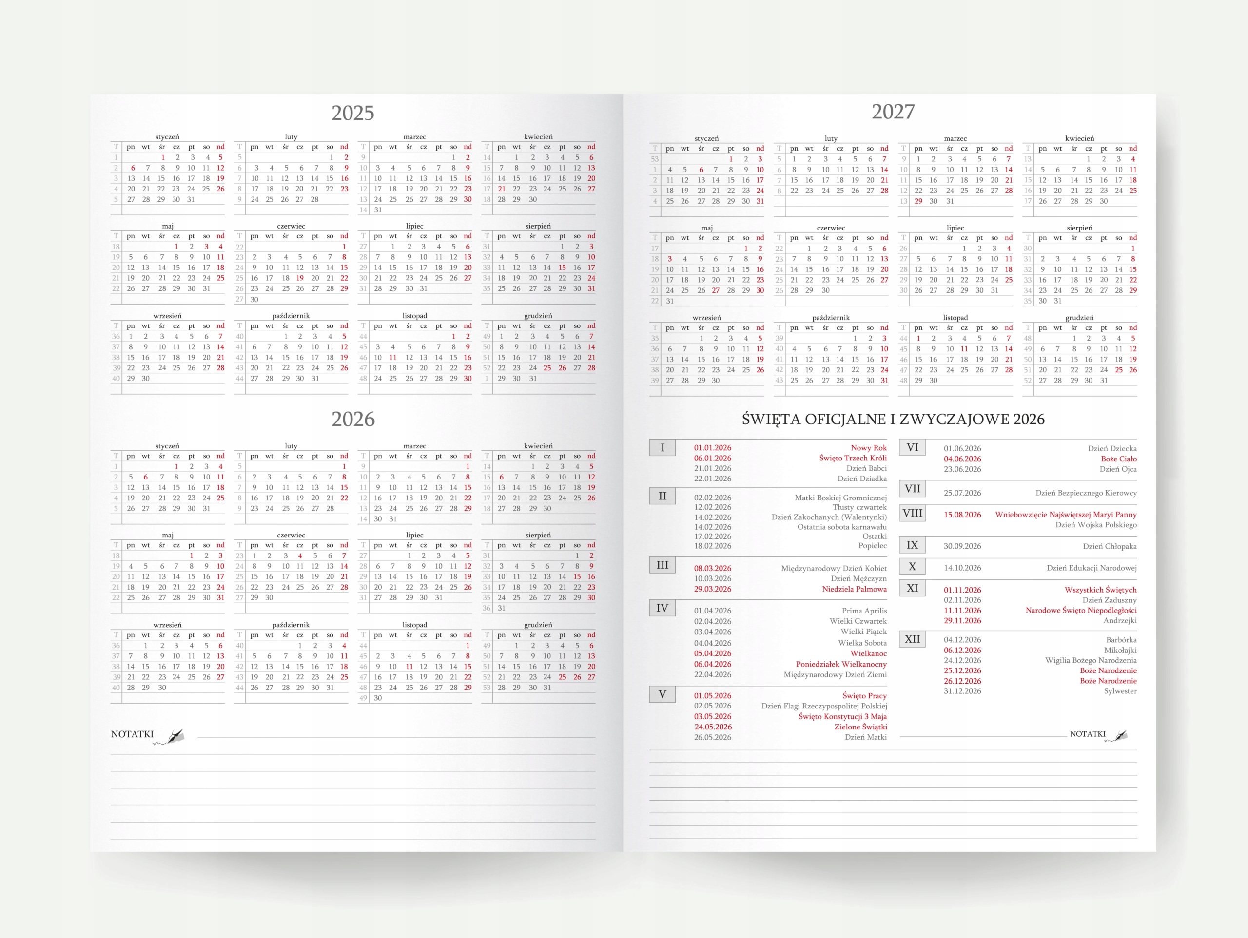 В ПРЕДЛОЖЕНИИ НОВАЯ МОДЕЛЬ! • Джаз: книжный календарь на 2026 год. • формат: А5 • переплет: твердый, из блестящего и переливающегося материала • цвет: черный • закрывается черной резинкой • черный ластик на ручке • закругленные углы переплетов и страниц • две черные ленты • первые страницы внутри и конверт кремового цвета на задней обложке. • макет: еженедельно (неделя на двух страницах) • количество страниц: 178 страниц. • плотность бумаги: 80 г/м2 • бумага нежного замшевого цвета • внутри: годовой план и расписание на 2026 год, специальный планировщик для управления задачами во времени (например, планирование отпусков, отпусков, визитов к клиентам, процедур и т. д.), разбитый на каждый месяц отдельно, даты зимних каникул, официальных и обычных праздников, поездок, информация для путешественников, послеаварийный протокол в случае аварии, записная книжка, справочник контактов, дополнительный календарь на 2025-2026-2027 годы. • размеры: длина 210 мм, ширина 145 мм, высота 15 мм. • переплет, подготовленный для персонализации календаря, например. логотип компании, имя и фамилия и т. д.