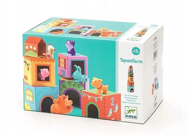 DJECO - Klocki kartonowe - figurki zwierzątek, domki - TOPANIFARM
