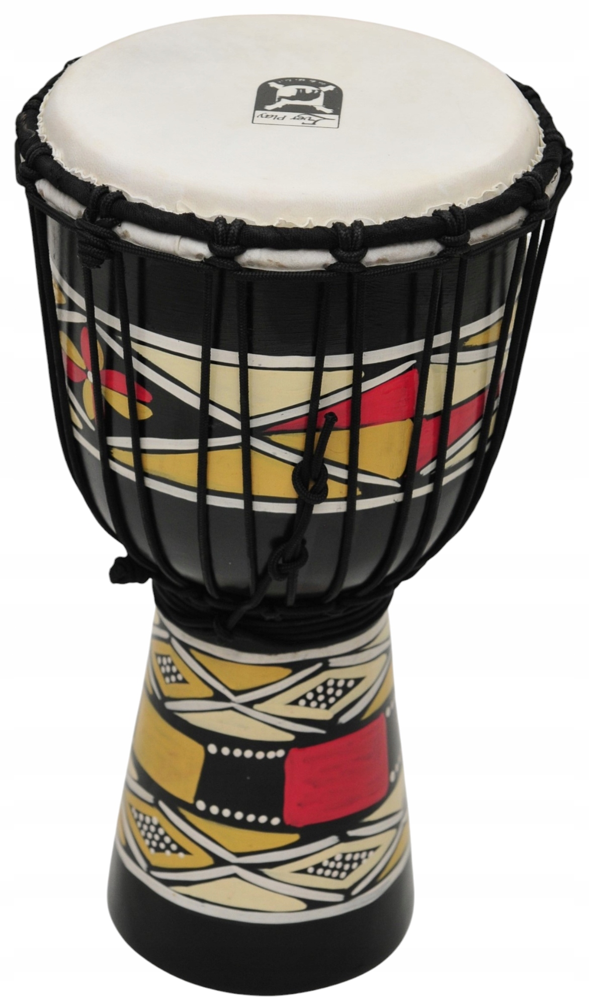 Корпус, сделанный из одного куска дерева красного дерева, высококачественной натуральной кожи мембрана. ДЖЕМБЕ очень оригинальный, красочно украшенный красивыми этническими скульптурами. Оснащен удобной ручкой. Это делает его великолепным как ритмичный инструмент и красочный звук всей полосы.