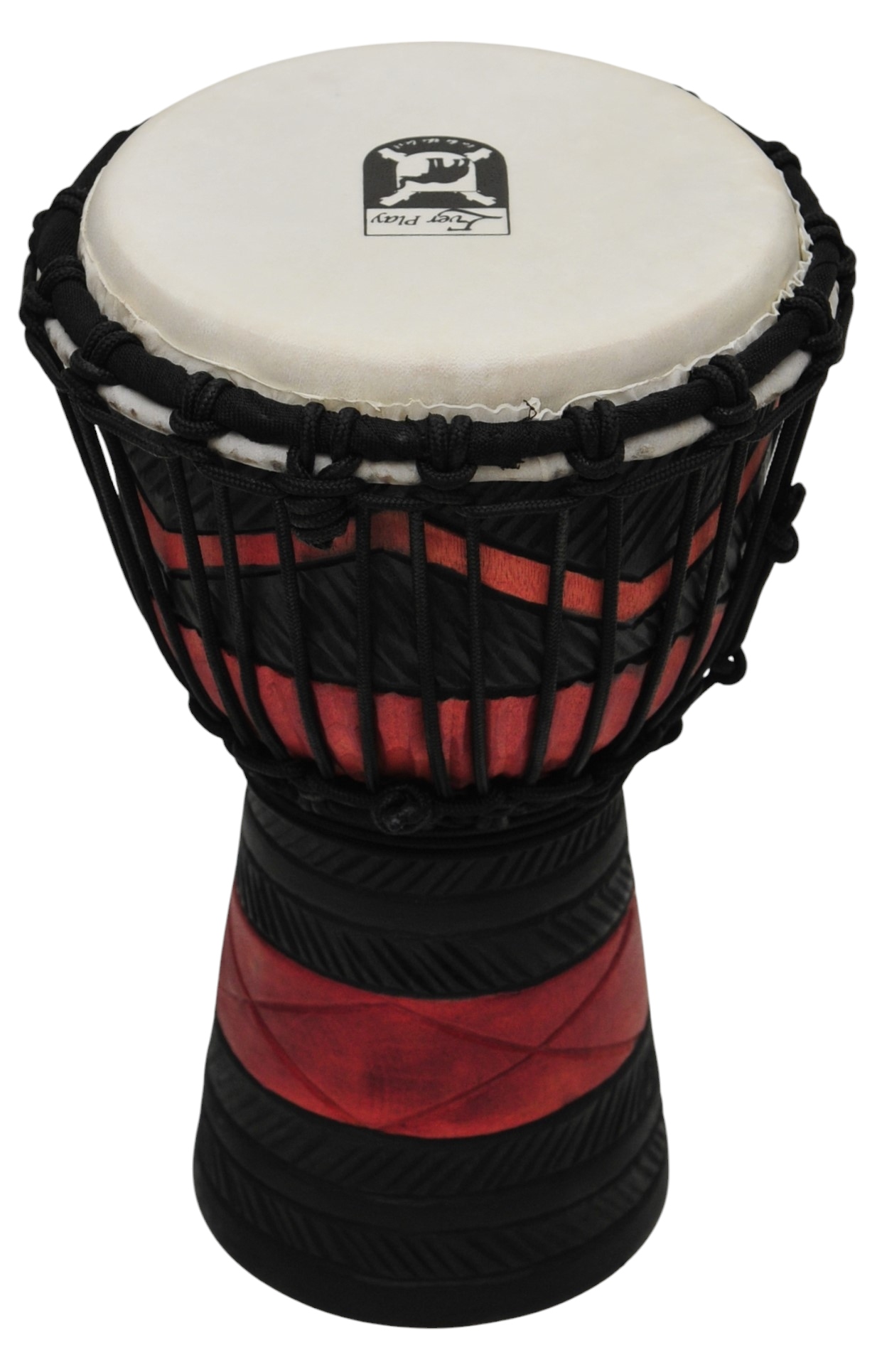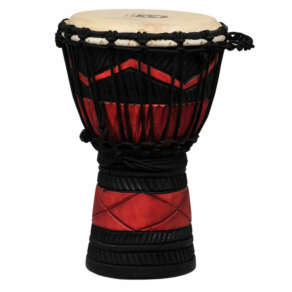 Корпус, сделанный из одного куска дерева красного дерева, высококачественной натуральной кожи мембрана. ДЖЕМБЕ очень оригинальный, красочно украшенный красивыми этническими скульптурами. Оснащен удобной ручкой. Это делает его великолепным как ритмичный инструмент и красочный звук всей полосы.