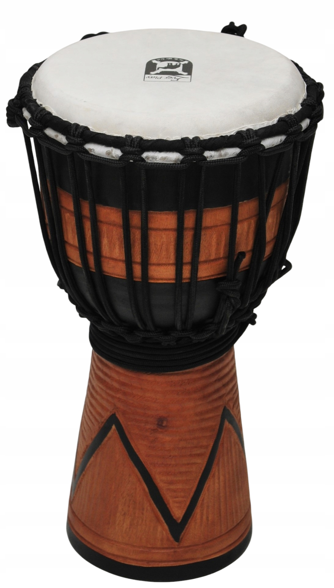 Корпус, сделанный из одного куска дерева красного дерева, высококачественной натуральной кожи мембрана. ДЖЕМБЕ очень оригинальный, красочно украшенный красивыми этническими скульптурами. Оснащен удобной ручкой. Это делает его великолепным как ритмичный инструмент и красочный звук всей полосы.