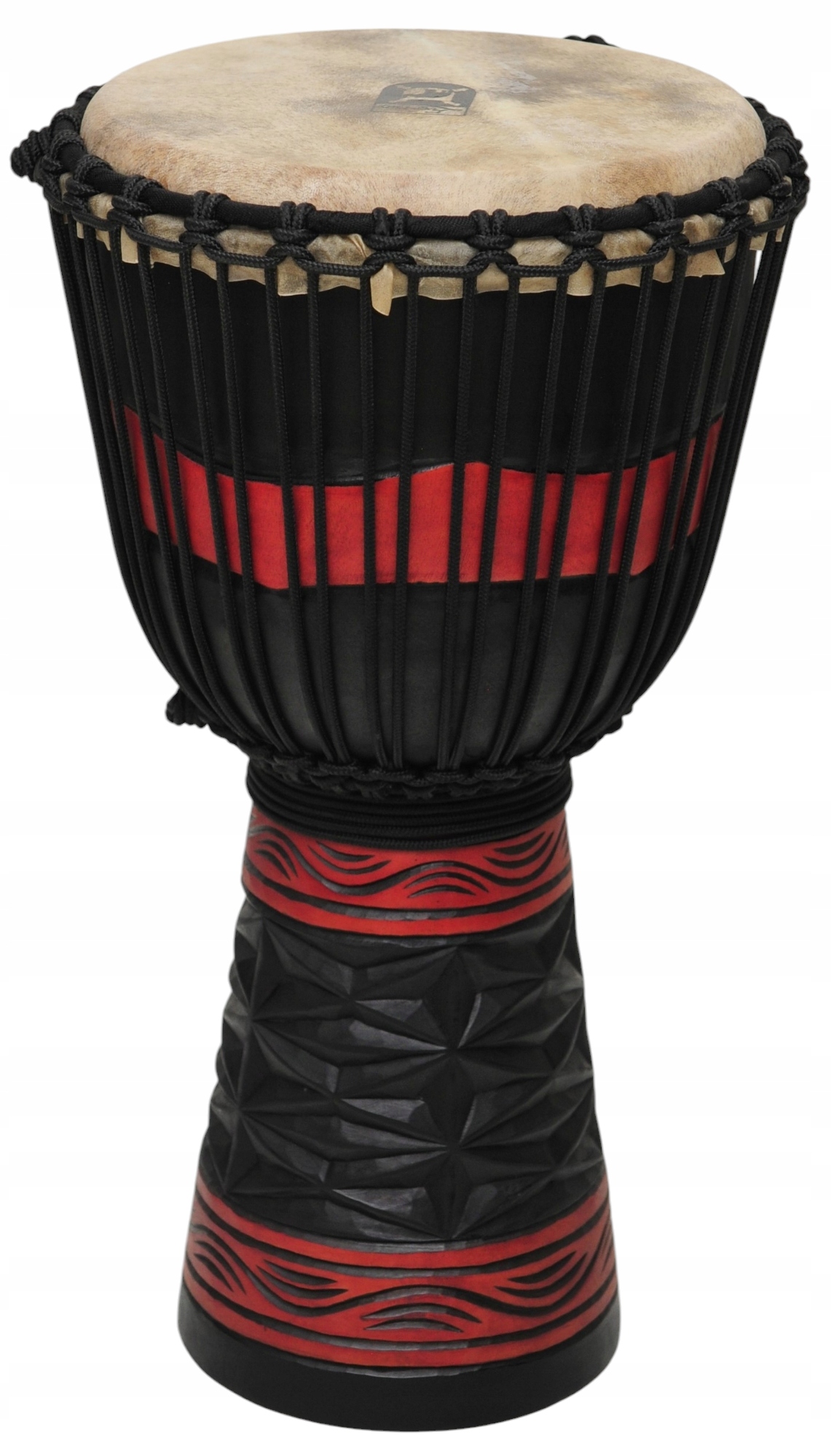 Корпус, сделанный из одного куска дерева красного дерева, мембрана из высокого качества натуральная кожа. ДЖЕМБЕ очень оригинальный, красочно украшенный красивыми этническими скульптурами. Оснащен удобной ручкой. Это делает его великолепным как ритмичный инструмент и красочный звук всей полосы.