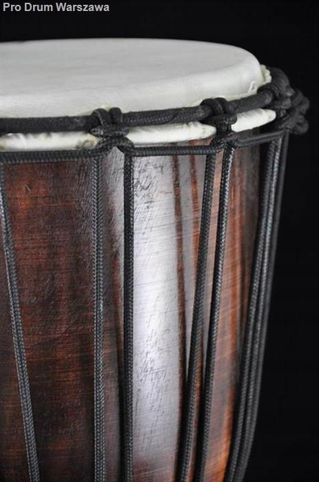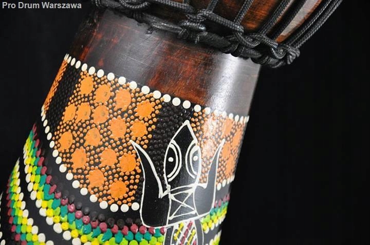 Джембе (произносится как джамбе или джамба) родом из Африки — это одномембранный инструмент, построенный на основе деревянной чашки. Источником звука является мембрана, чаще всего изготовленная из кожи козы или буйвола. Это придает ему теплый, естественный звук и легко передает вибрации телу. Ее натяжение достигается благодаря системе натяжных шнуров, проходящих вдоль всей чашки, и благодаря им мы также можем выполнять настройку, переплетая струну между петлями соответствующим образом. Чем больше ширина диафрагмы и самой чашки, тем громче и глубже будет бас. Поэтому перед покупкой стоит подумать, ищем ли мы более агрессивное, яркое звучание или более этническое, гулкое звучание.