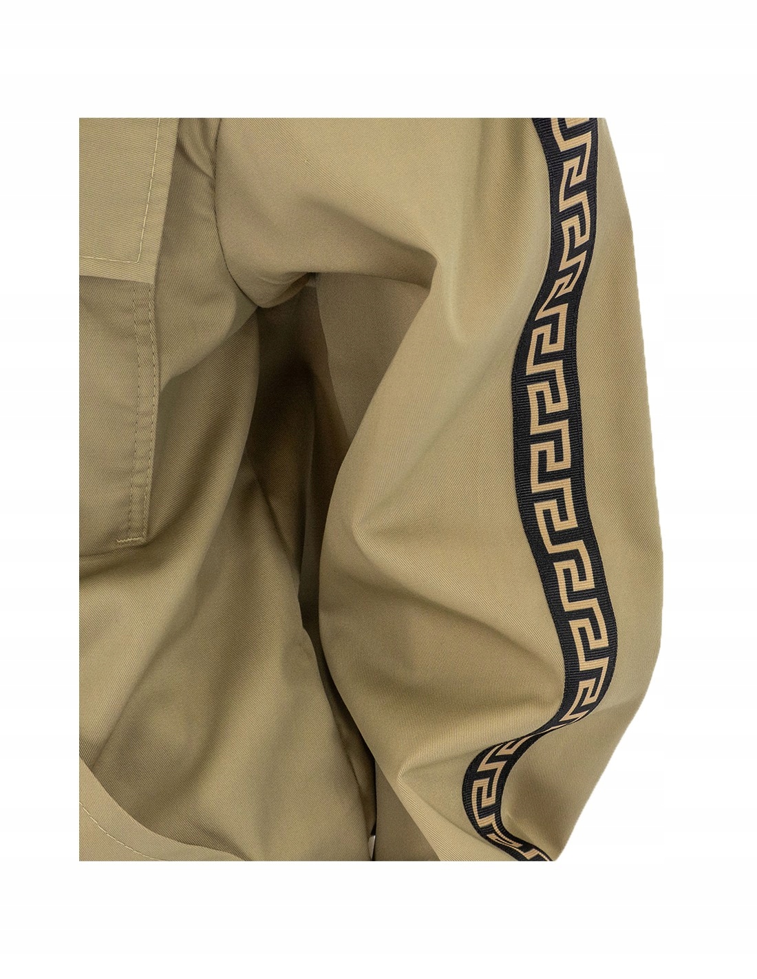 Чрезвычайно модный внешний вид толстовки обусловлен бежевым цветом в сочетании с золотисто-черным акцентом на рукавах, которые выглядят стильный и элегантный. Бежевый цвет толстовки гармонично сочетается с черными полосками на рукавах, а золотистый узор делает ее еще более блестящей.