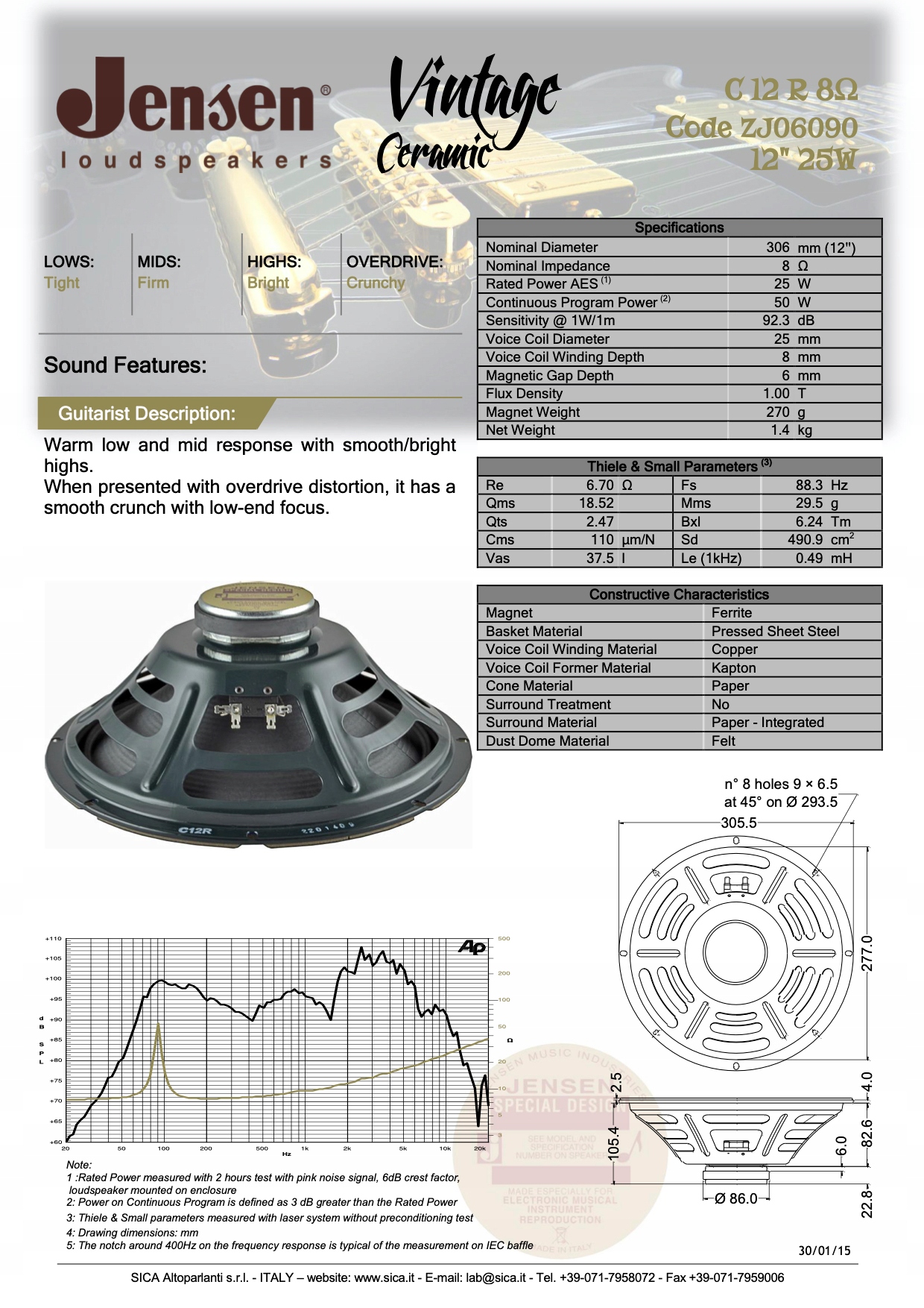 Просматривая «Jensen C12R 12 ″ гитарный динамик», вы можете быть уверены, что данный товар из каталога «[rubrica_name]» будет доставлен из Польши и проверен на целостность. В цене товара, указанной на сайте, учтена доставка из Польши. Внимание!!! Товары для Евросоюза, согласно законодательству стран Евросоюза, могут отличаться упаковкой или наполнением.