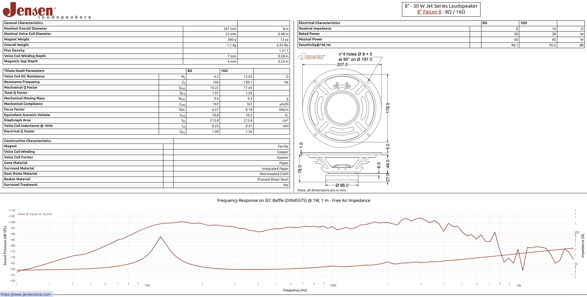 Jensen C8/30FA 8 ″ Falcon 30 W