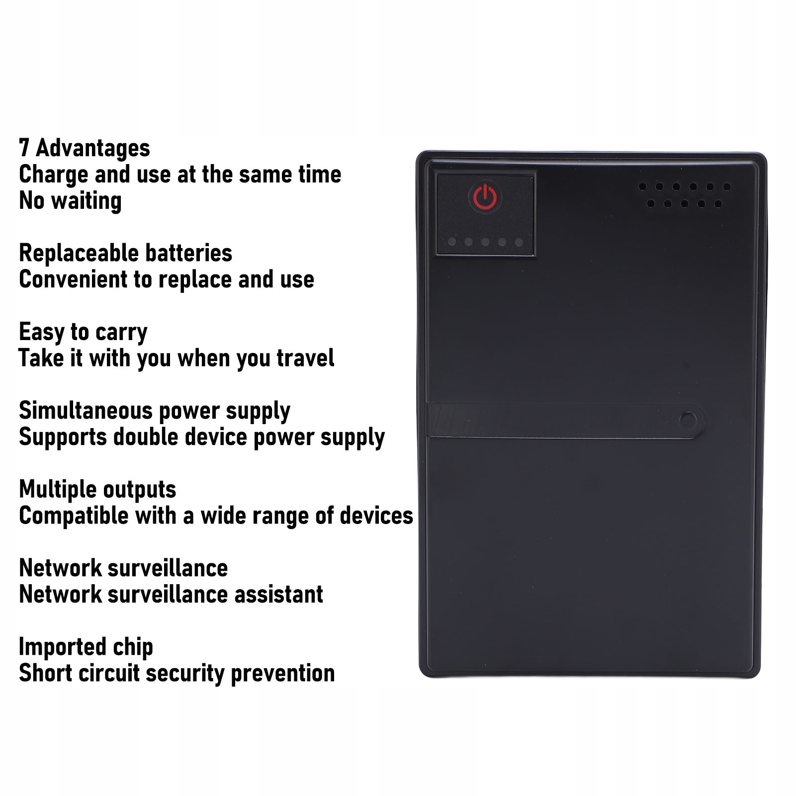 1. Вход и выход: этот ИБП поддерживает вход переменного тока и обеспечивает несколько вариантов выхода 5 В, 9 В и 12 В, что делает его легко настраиваемым для различных устройств и конфигураций.