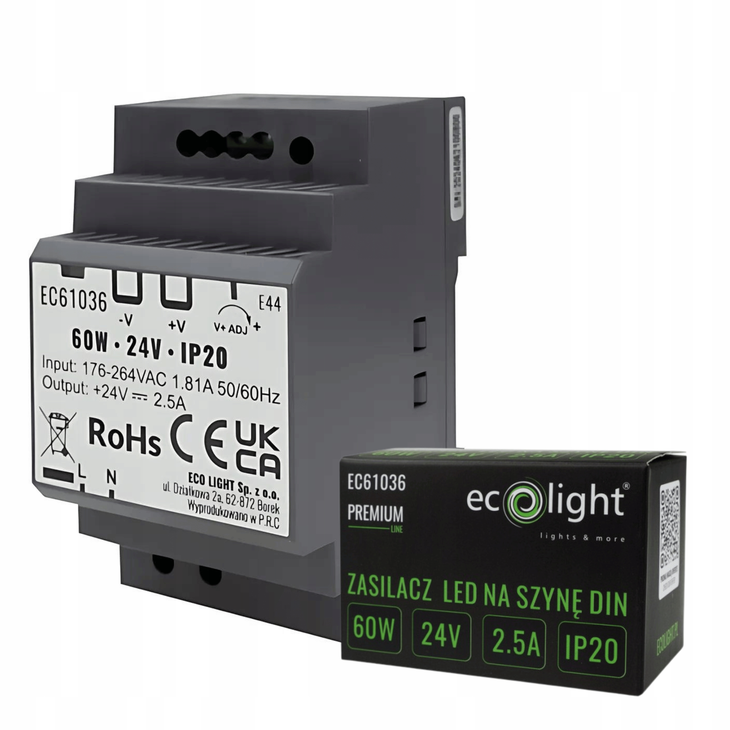 ⭐ Источник питания на DIN-рейку 24В постоянного тока 60Вт Premium — эффективный и надежный источник питания для систем автоматизации, светодиодного освещения и других устройств, требующих стабильного напряжения 24В постоянного тока. Благодаря мощности 60 Вт он обеспечивает необходимое количество энергии даже для более требовательных установок.