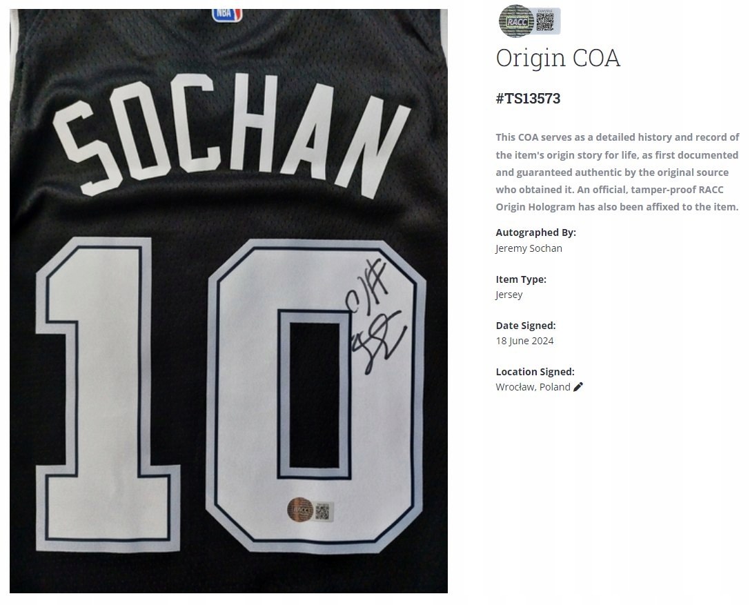 ДЖЕРЕМІ СОХАН Футболка Сан-Антоніо Сперс Польща АВТОГРАФ + СЕРТИФІКАТ НБА
